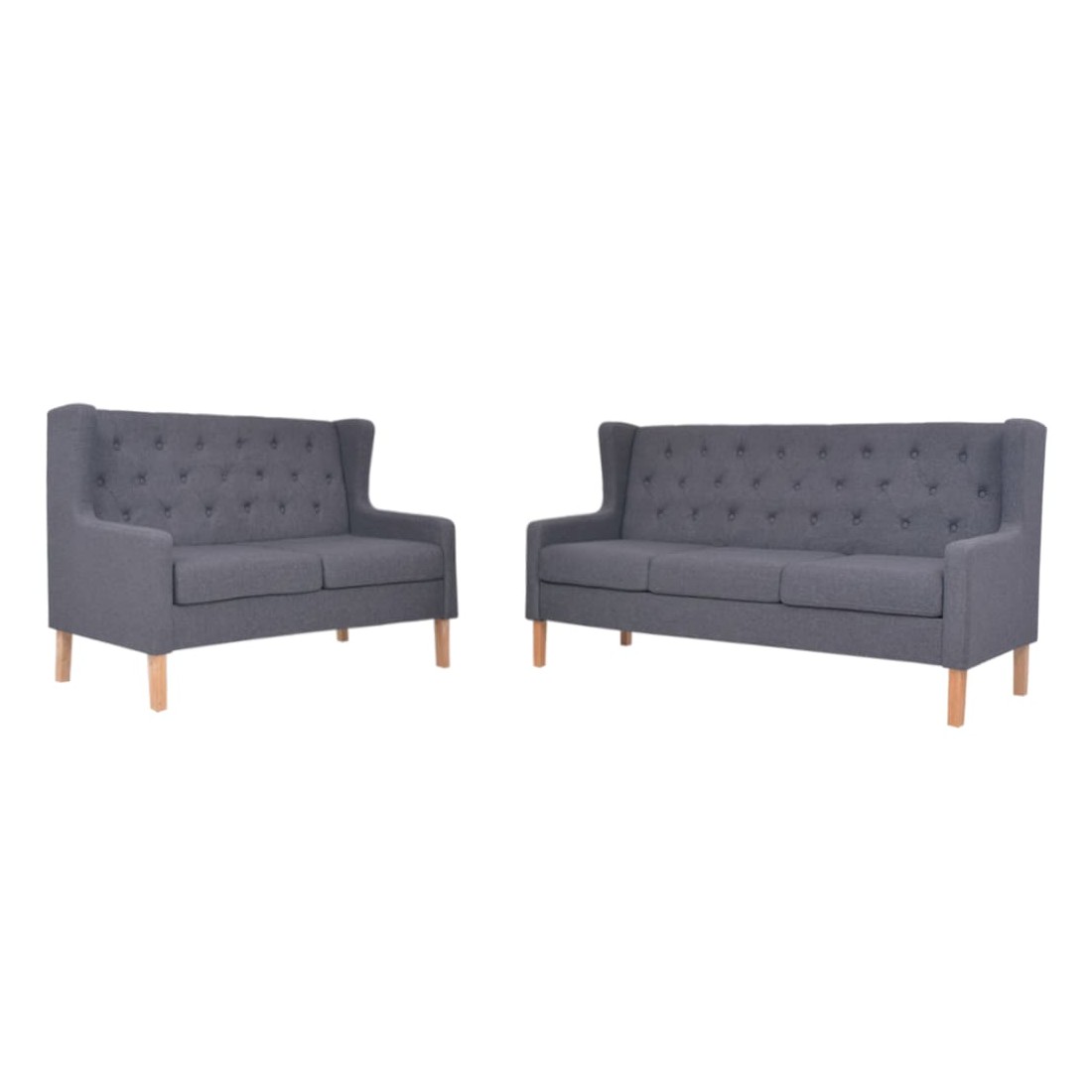 Cet ensemble de canapé très confortable, au design sobre, sera idéal pour bavarder, lire, regarder la télévision ou simplement vous détendre. L'ensemble de canapé est capitonné en tissu polyester doux et rembourré avec de la mousse pour plus de confort. Avec un cadre en bois massif, le canapé est stable et durable. L'assemblage est facile. La livraison comprend un canapé à 2 places et un canapé à 3 places.