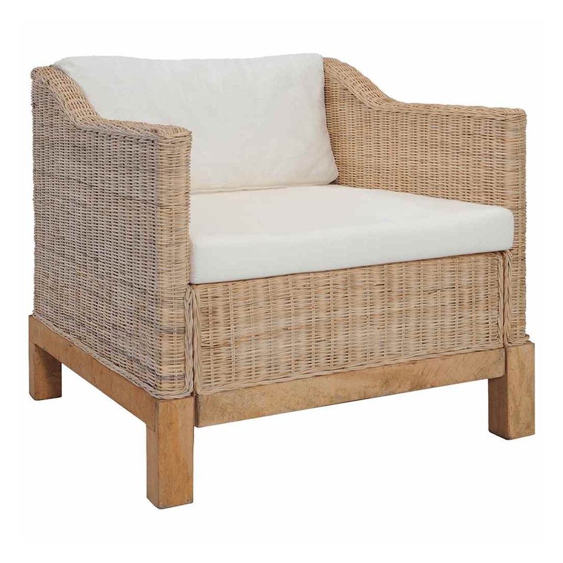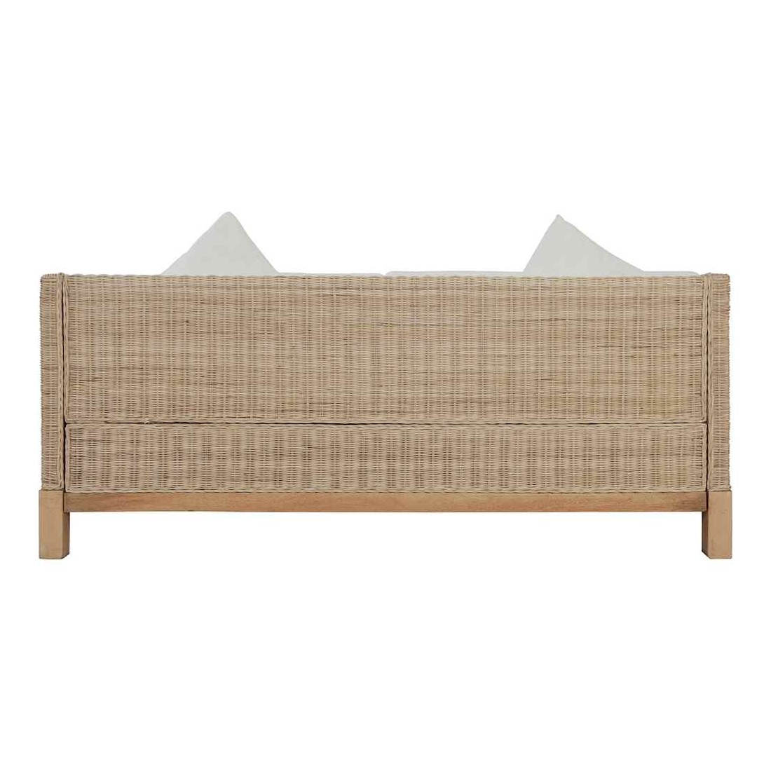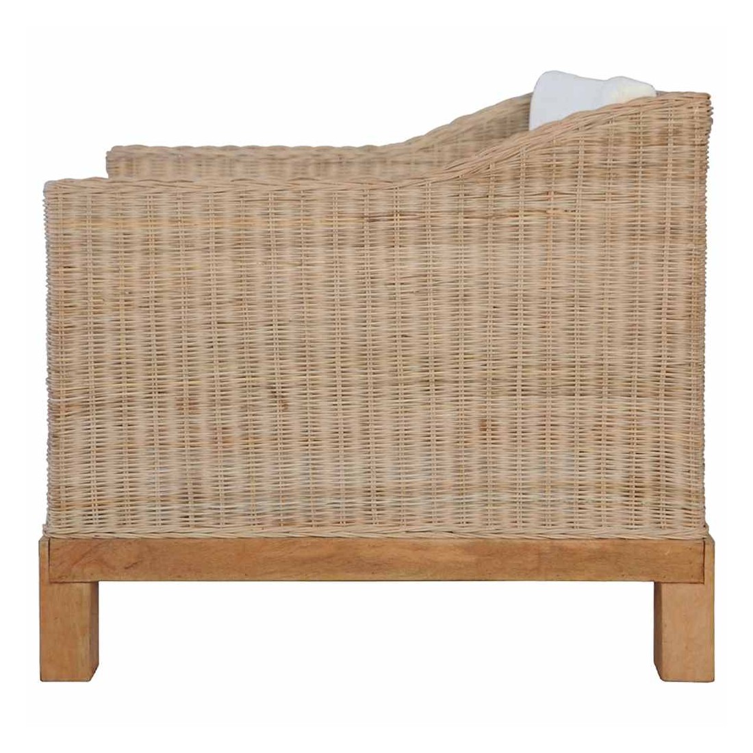 - Matériau : rotin naturel + cadre en bois de manguier massif + revêtement en tissu