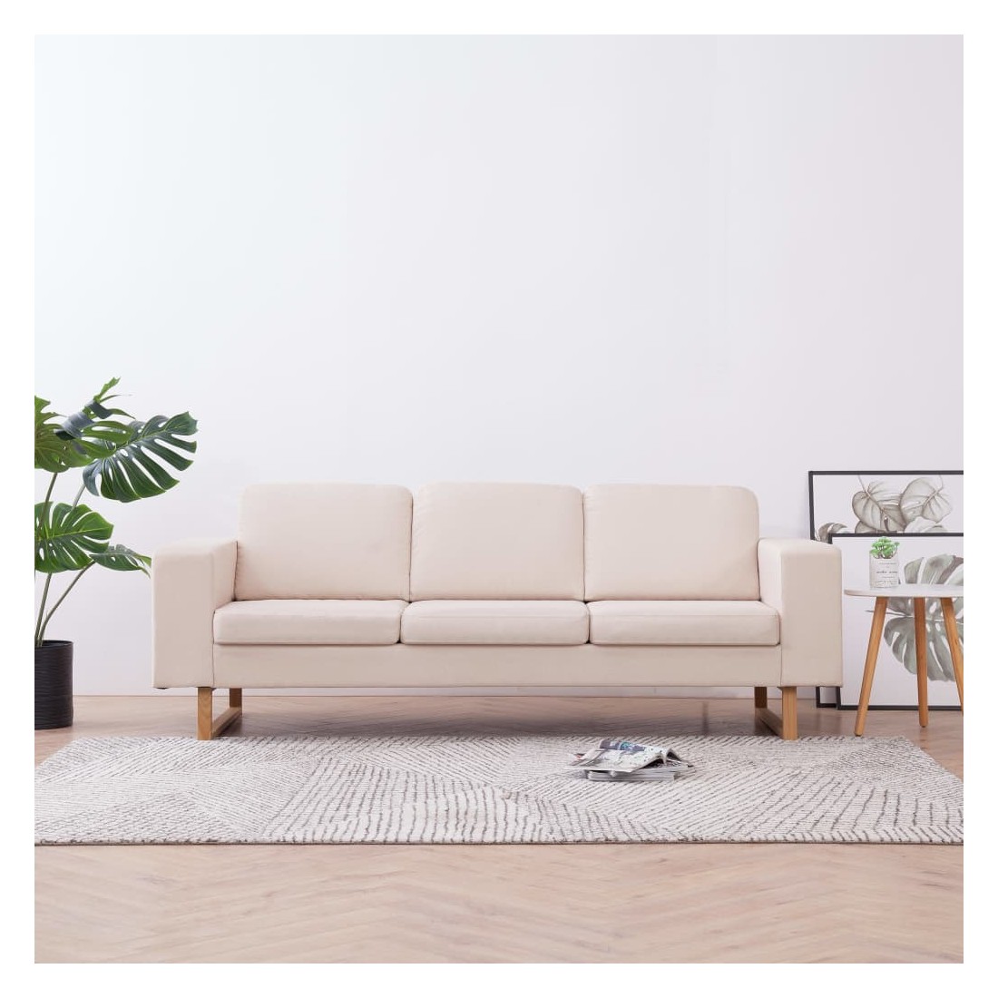 Canapé à 3 places Tissu Crème