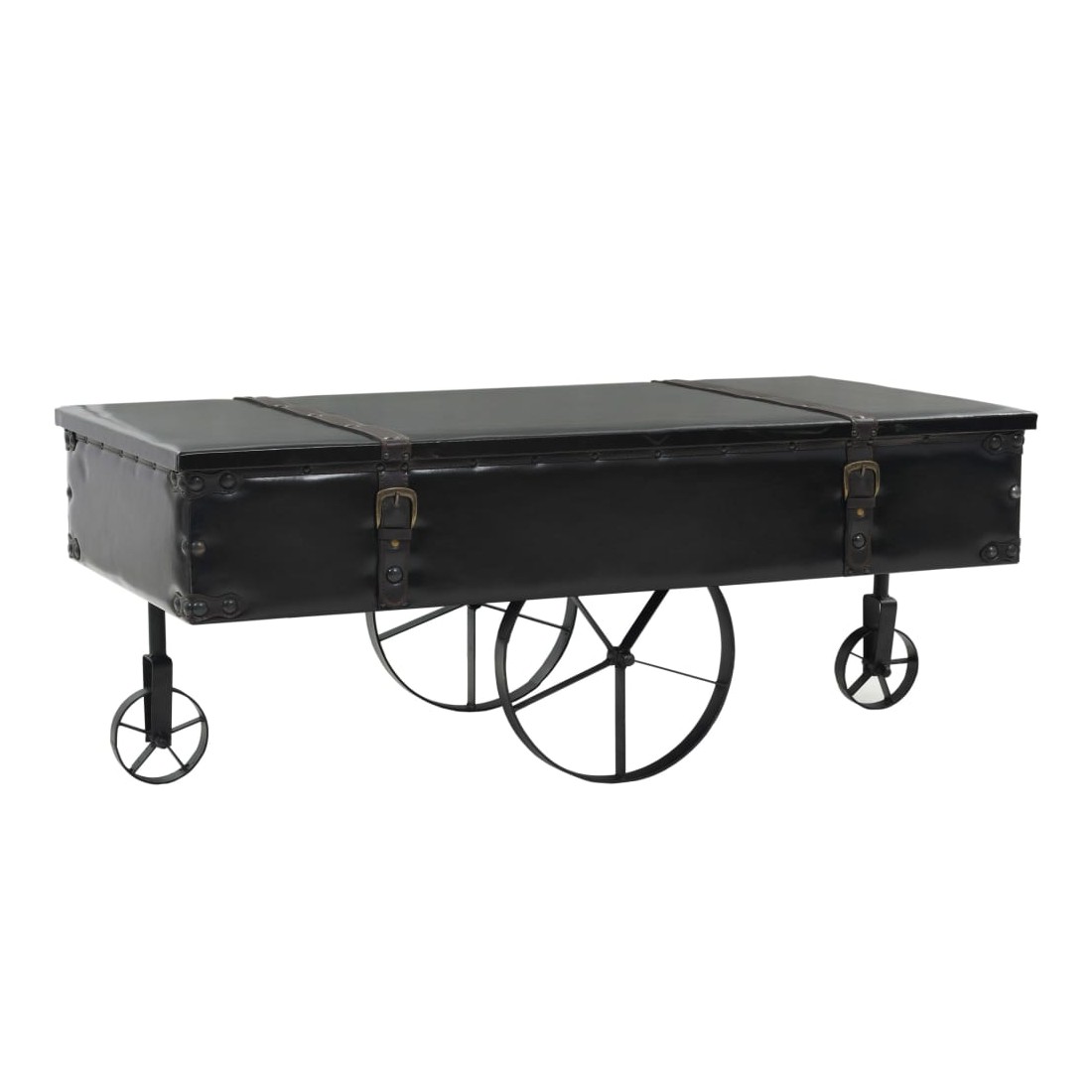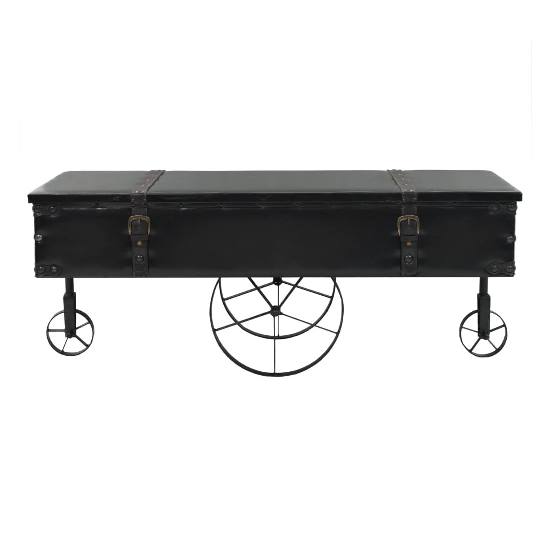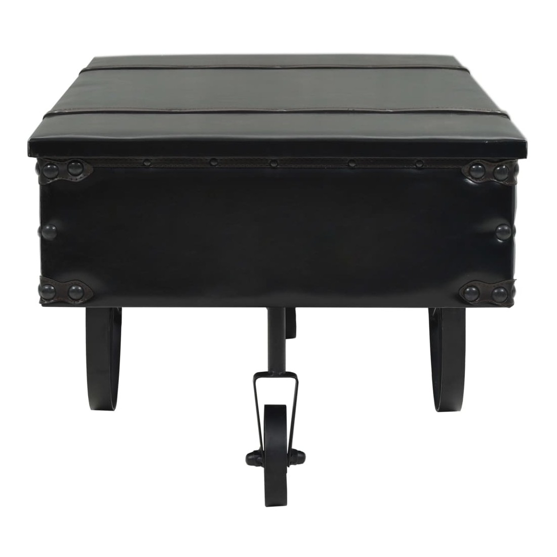 Cette table basse unique en forme de coffre de voyage ajoutera une touche d'élégance à votre décoration avec son design industriel spectaculaire. Elle peut également être utilisée comme table d'appoint ou table de bout. Cette table durable et belle est faite de MDF et de bois de sapin solide couvert en similicuir capitonné ; 2 grandes roues sont pour la décoration et ajoutent à son style industriel. Le dessus de table est idéal pour placer des boissons, des vases, des plantes en pot, des corbeilles de fruits et d'autres objets décoratifs. Les 2 petites roues facilitent le déplacement de la table. La table sous forme de coffre est facile à assembler.