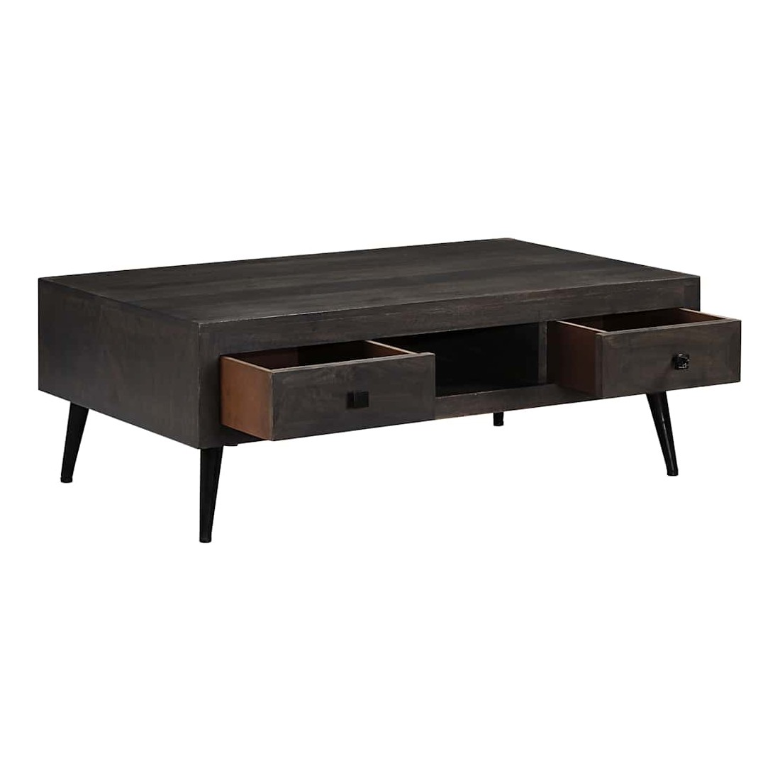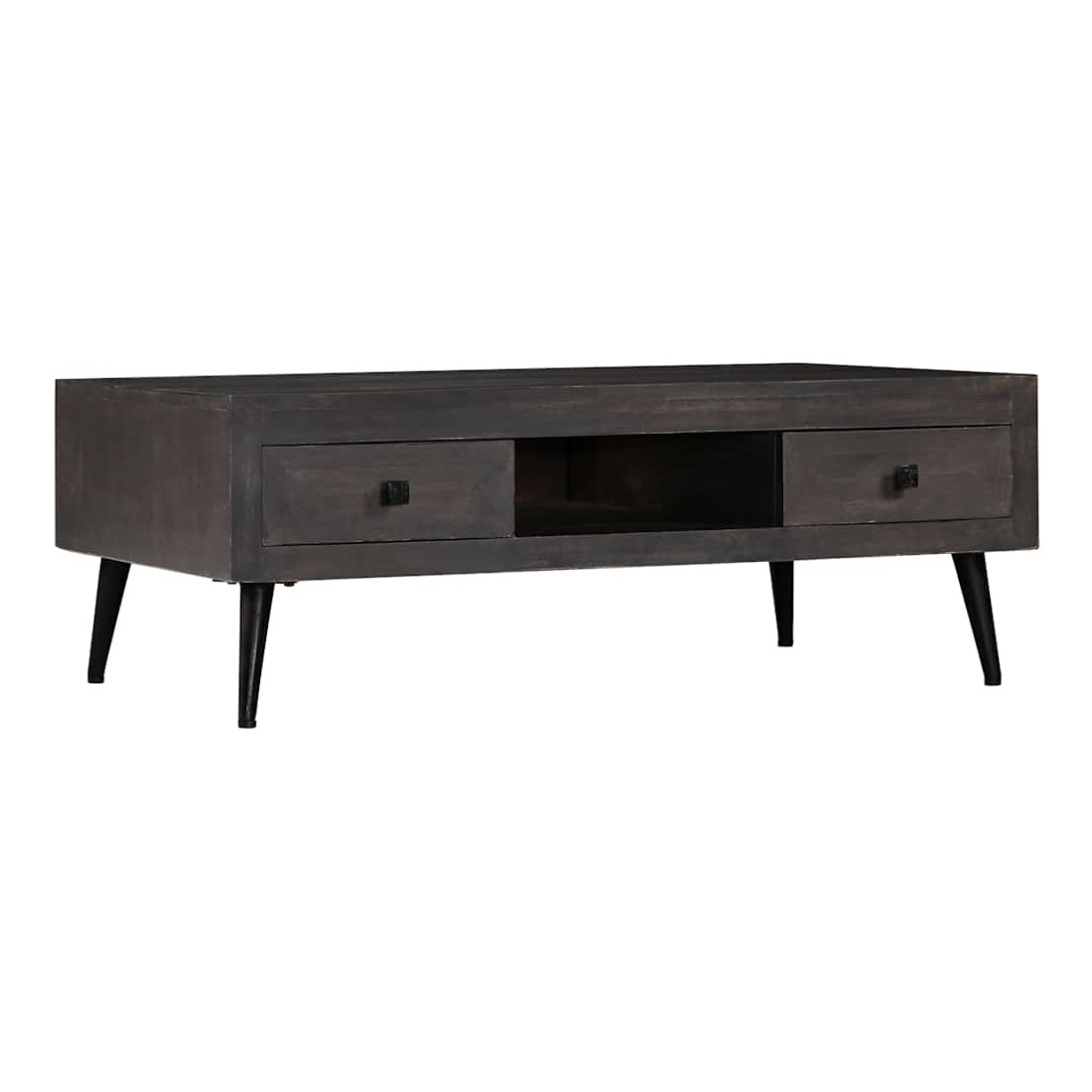 Cette table basse en bois de manguier massif laqué sera un ajout décoratif et pratique à votre décor. Elle peut également être utilisée comme table d'appoint ou table d'appoint. La table basse en bois est fabriquée à la main à partir de bois de manguier massif, un matériau robuste, stable et beau, et le savoir-faire artisanal ajoute à son style rétro spectaculaire. Chaque étape du processus est réalisée avec le plus grand soin, qu'il s'agisse de polissage ou de laquage. Le savoir-faire artisanal et les beaux grains de bois rendent chaque meuble unique et légèrement différent l'un de l'autre. Conçue avec 2 tiroirs et 1 compartiment, cette table dispose d'un grand espace de rangement pour garder vos objets importants organisés et à portée de main. L'assemblage est facile. Remarque importante : les couleurs et les grains peuvent varier d'une pièce à l'autre, rendant chacune de nos tables basses unique ; la livraison est aléatoire.