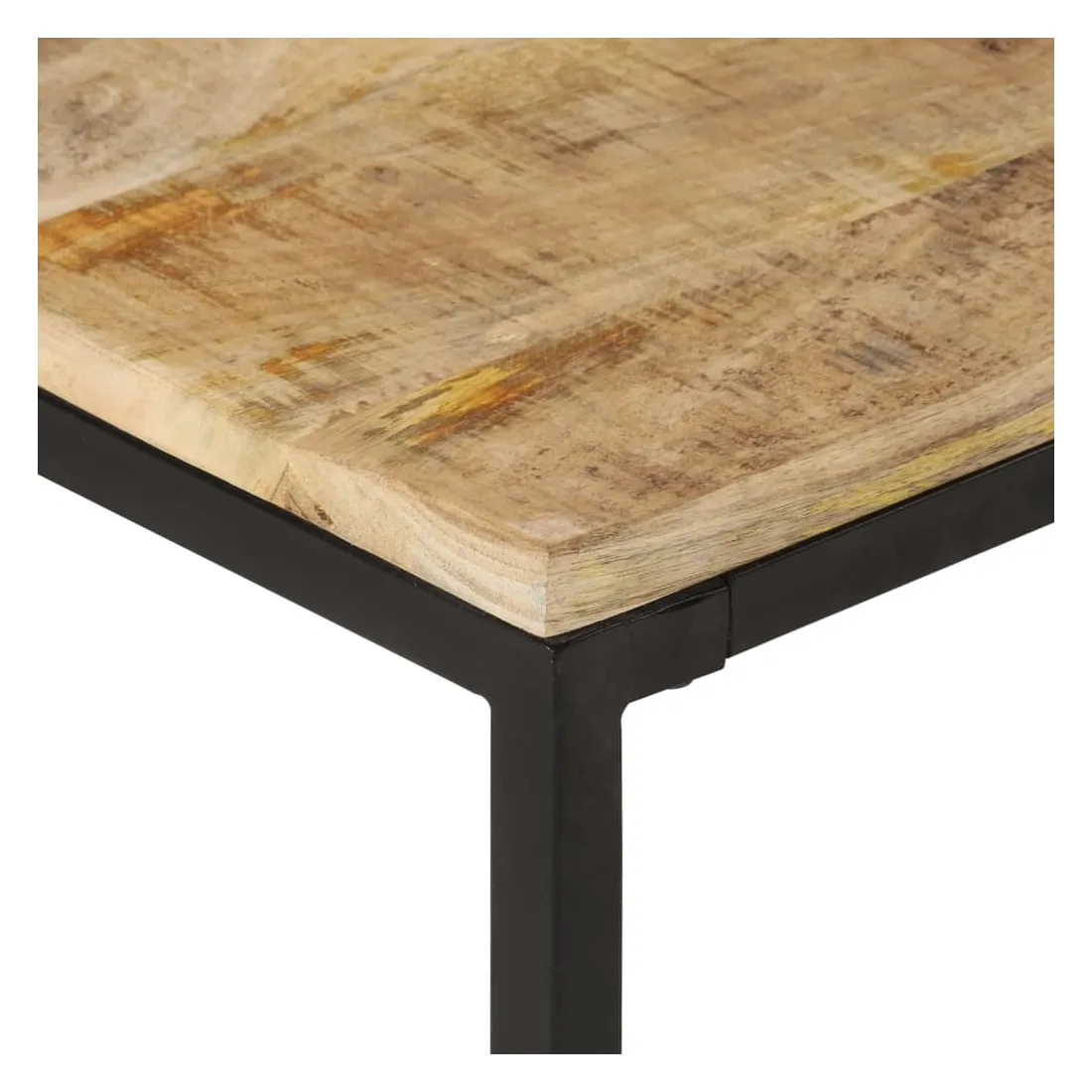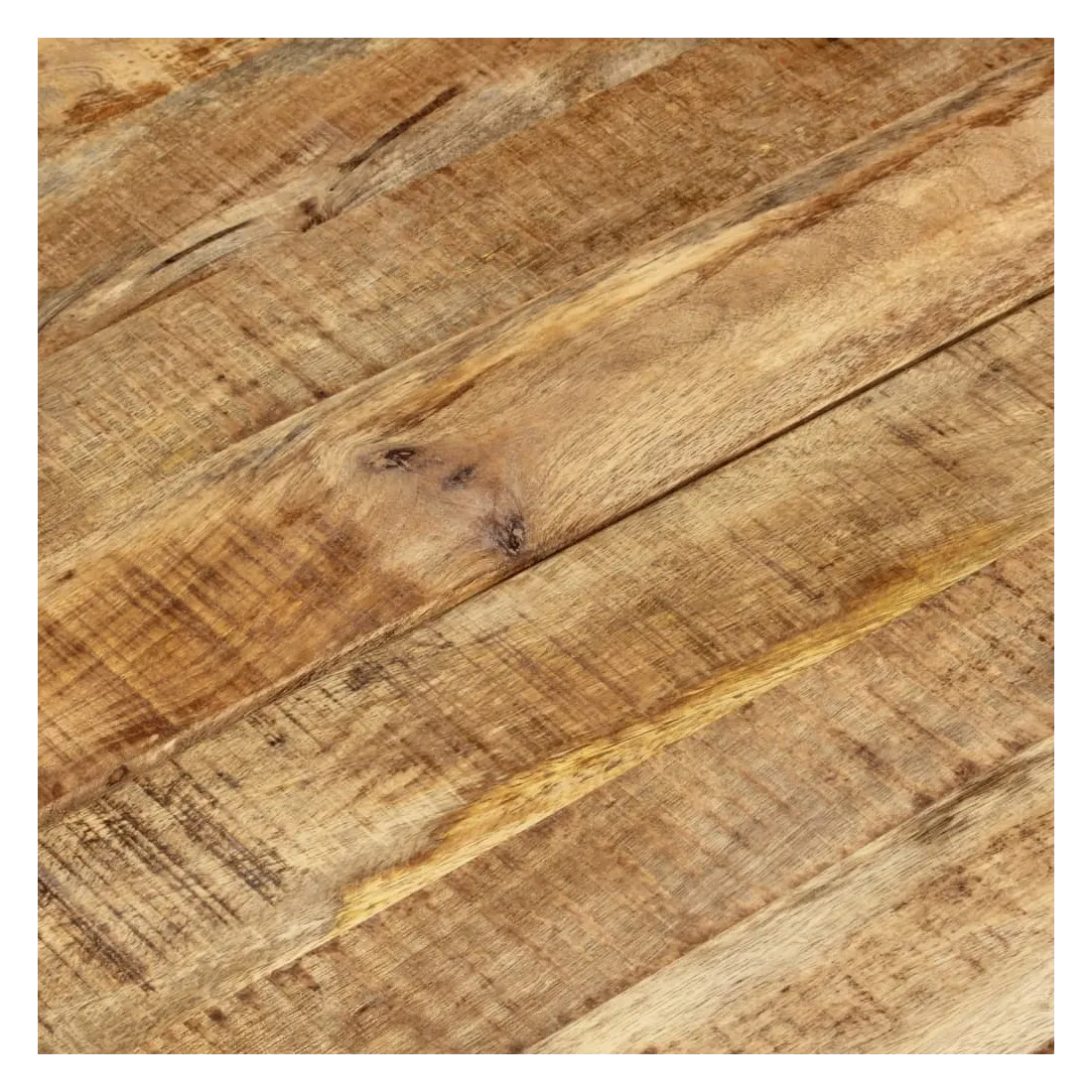 - Matériau : bois de manguier brut avec une finition naturelle, fer avec revêtement en poudre noire