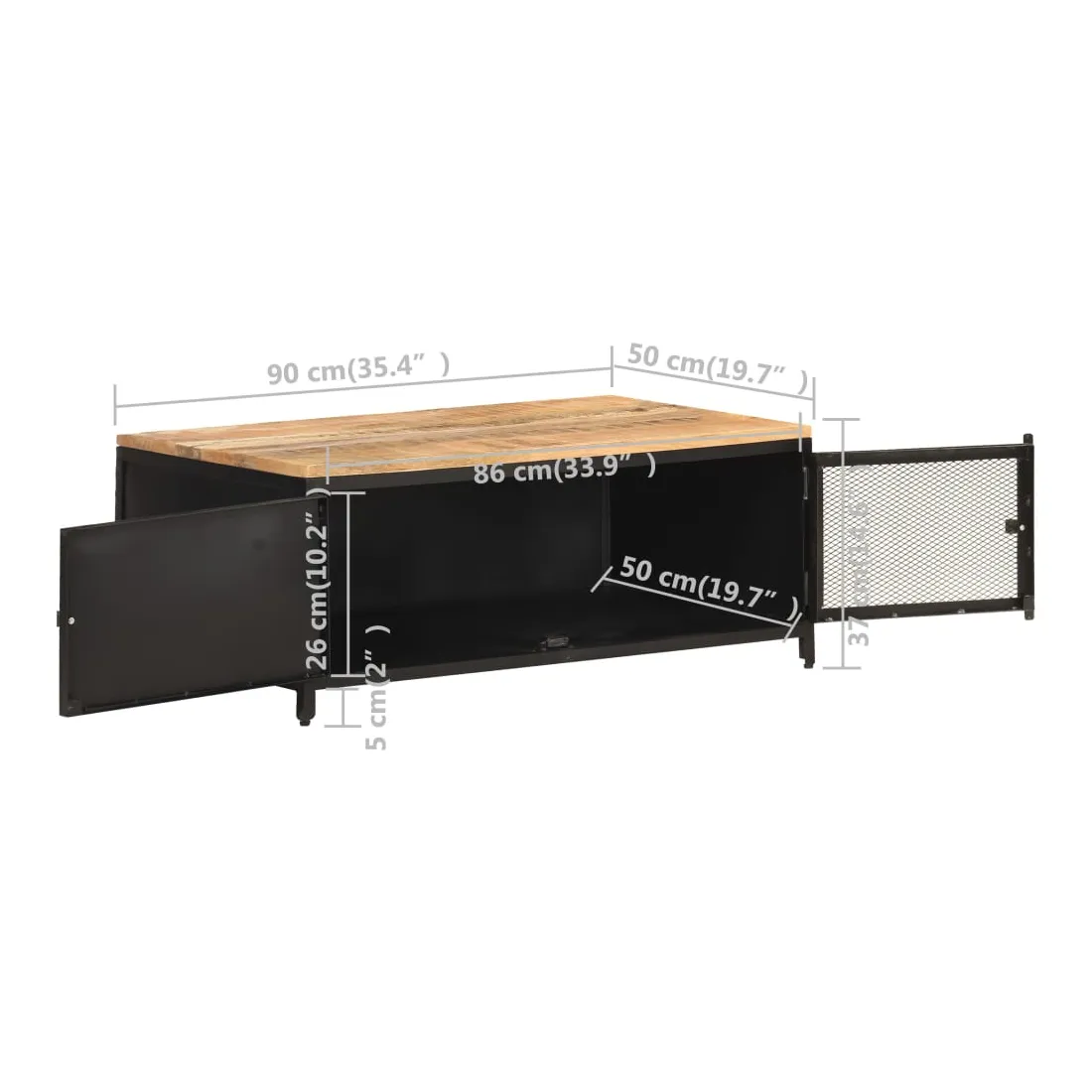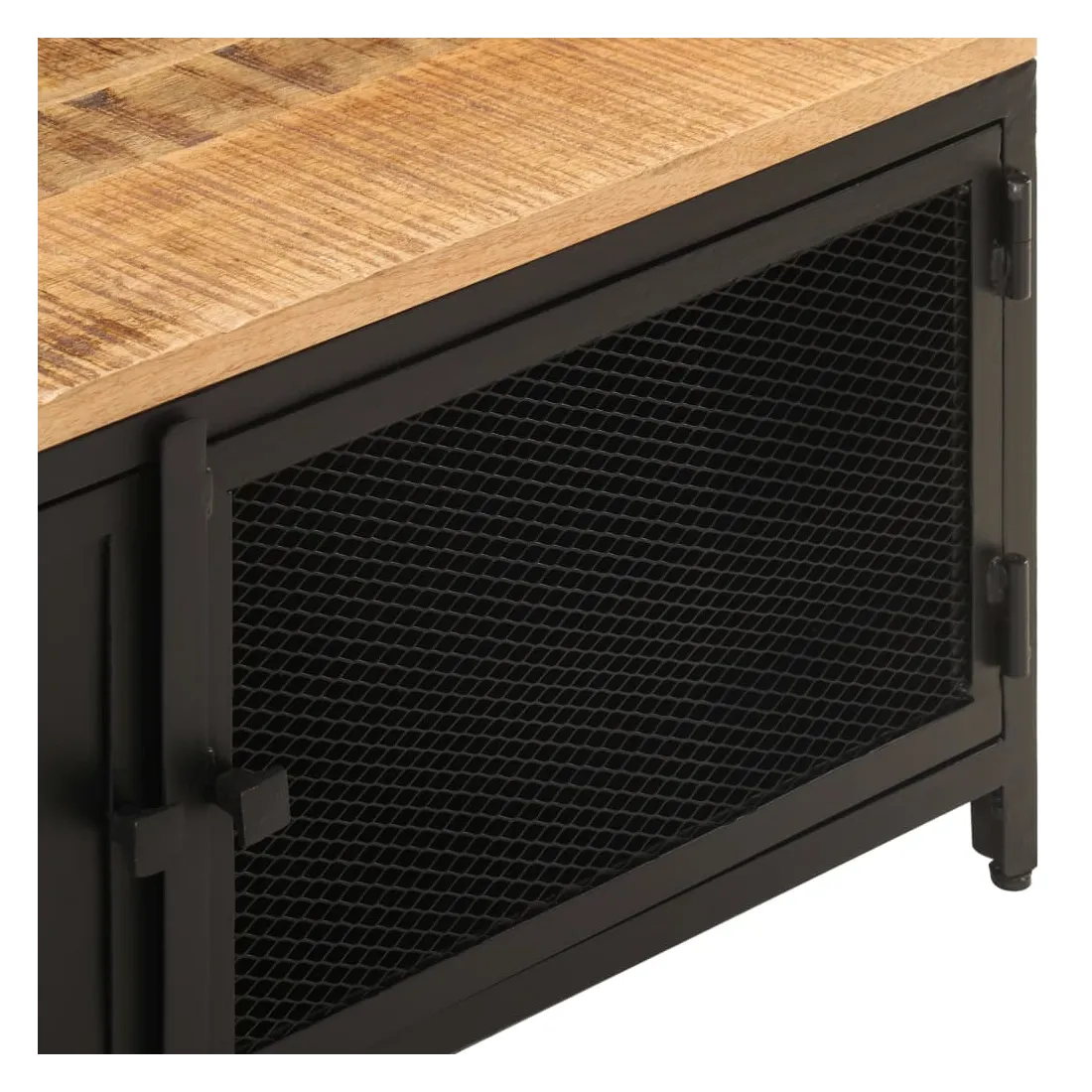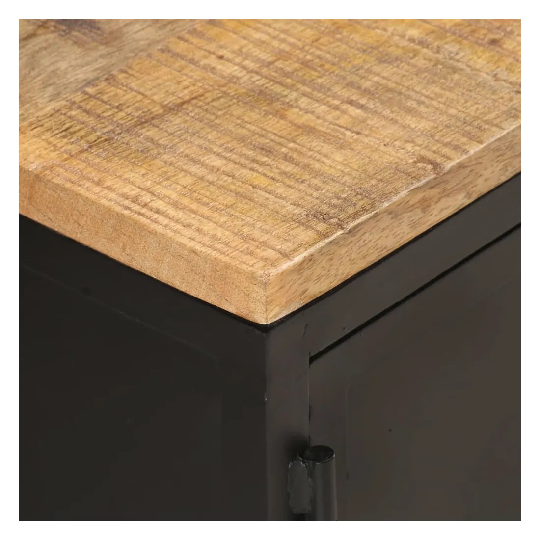 - Matériau : bois de manguier brut solide avec finition naturelle, fer enduit de poudre