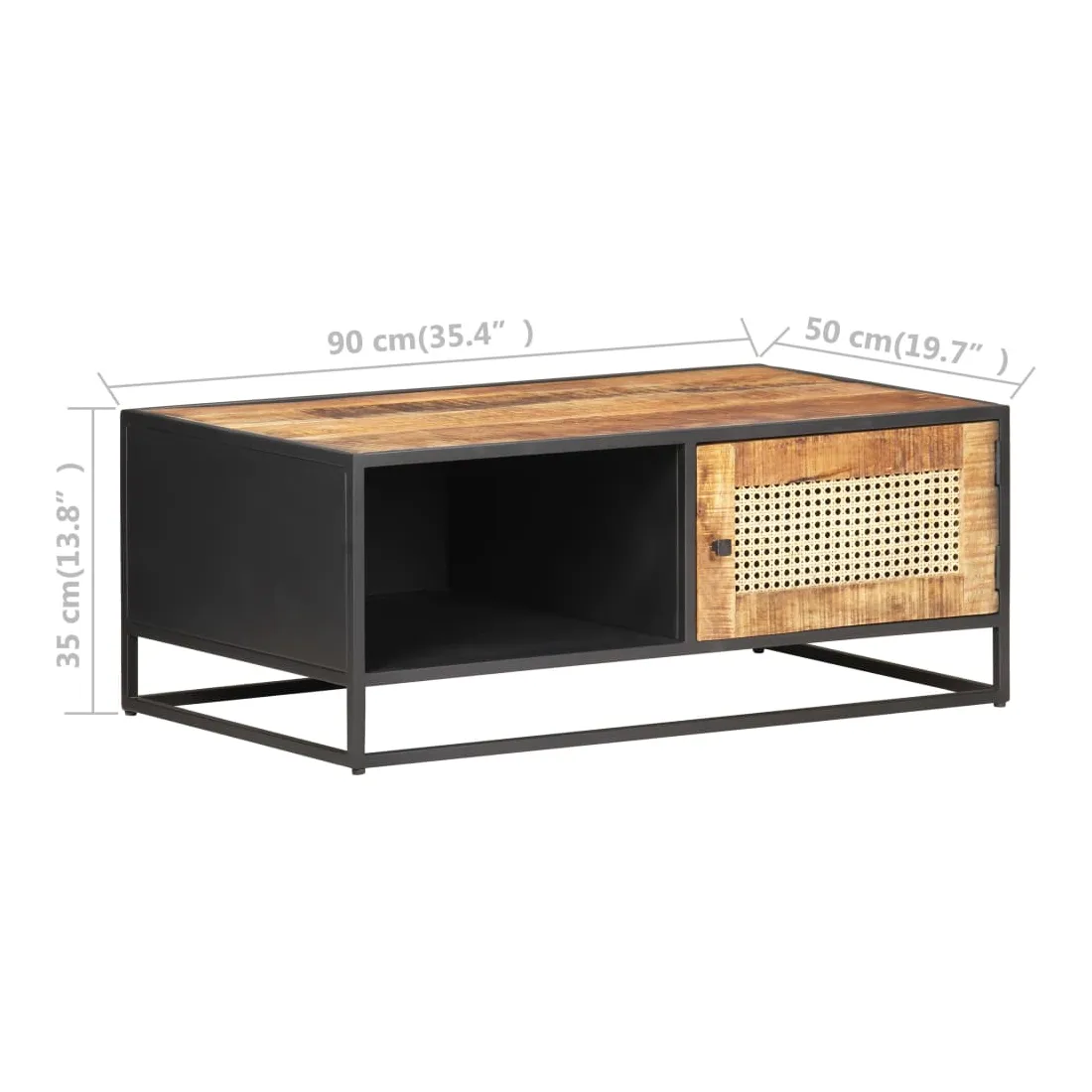 Si vous recherchez une touche de charme rustique à ajouter à votre décoration intérieure, cette table basse en bois de manguier massif sera pour vous. Le bois de manguier massif est un bois dur tropical. Il a d'une part la force de soutenir le poids, et d'autre part résiste à l'usure du temps. De plus, le savoir-faire exquis et les beaux grains de bois rendent chaque pièce de tables de canapé légèrement différente l'une de l'autre. La table d'appoint est équipée d'un grand espace de rangement, donc vous pouvez afficher ou garder bien organisés tous les articles que vous souhaitez. Le cadre en fer contribue à sa robustesse et à sa stabilité. De plus, la table d'appoint présente un motif de canne tissé à la main sur la porte, ajoutant à son charme rustique. Note importante : les couleurs varient d'une pièce à l'autre, rendant chaque table de salon en bois unique.