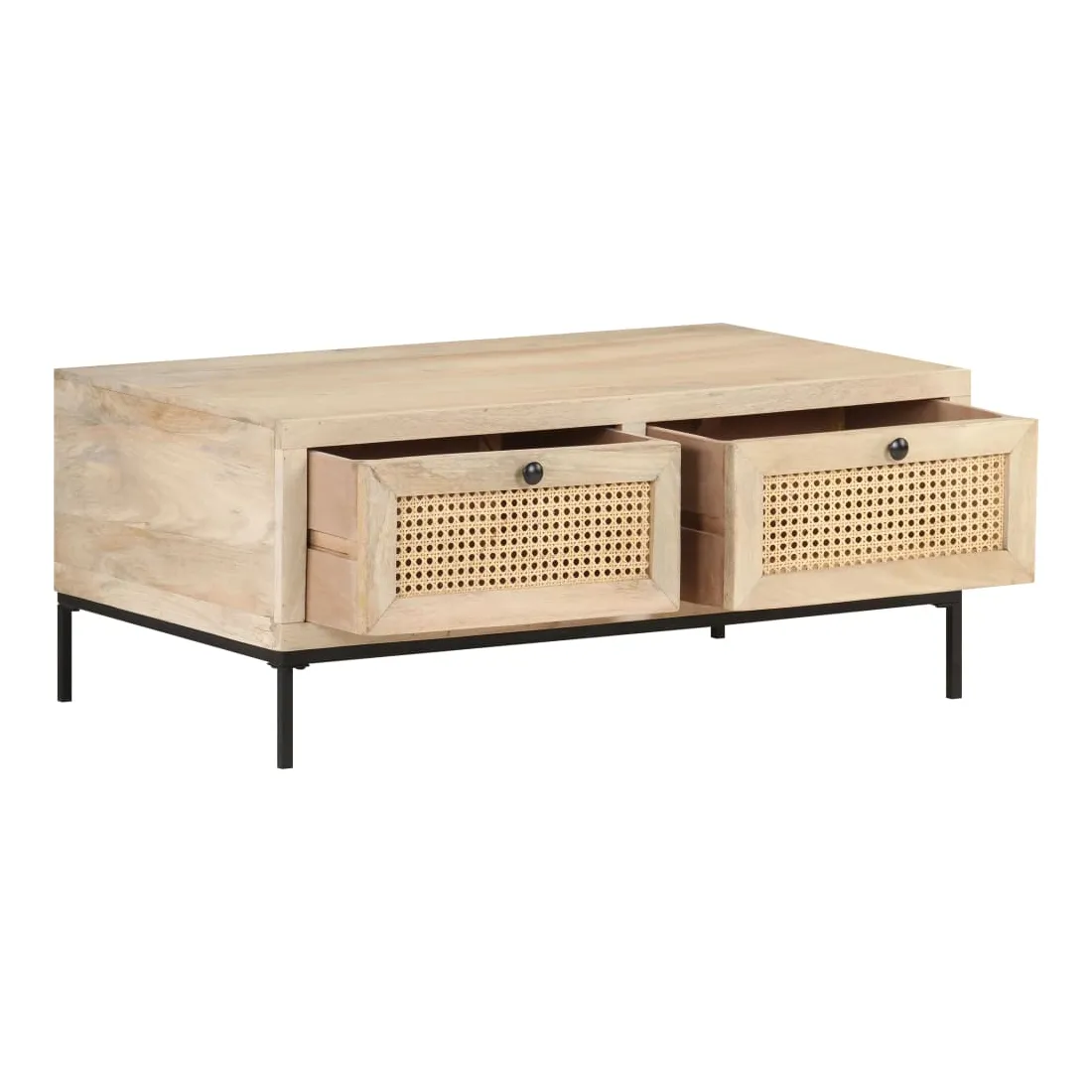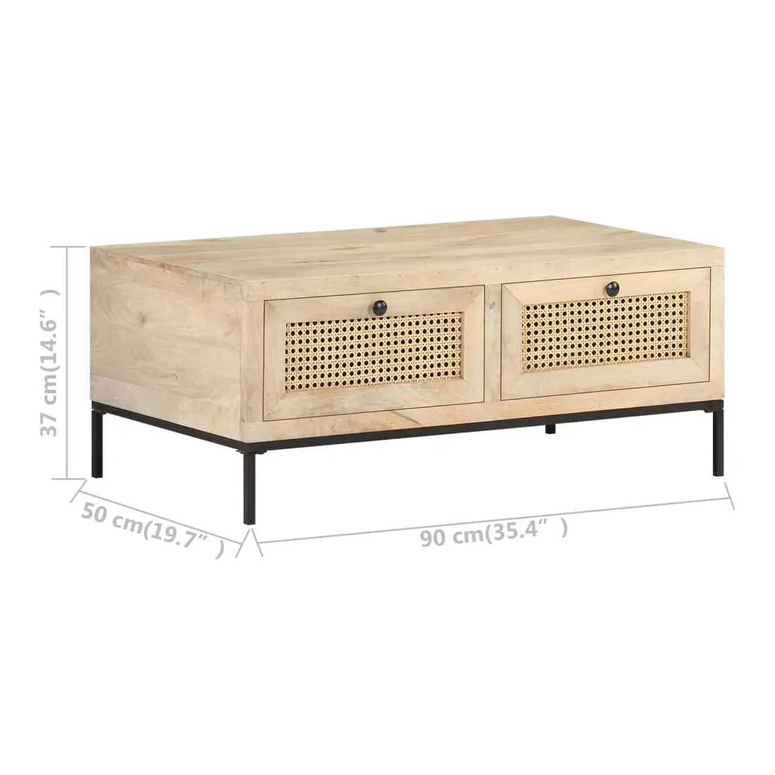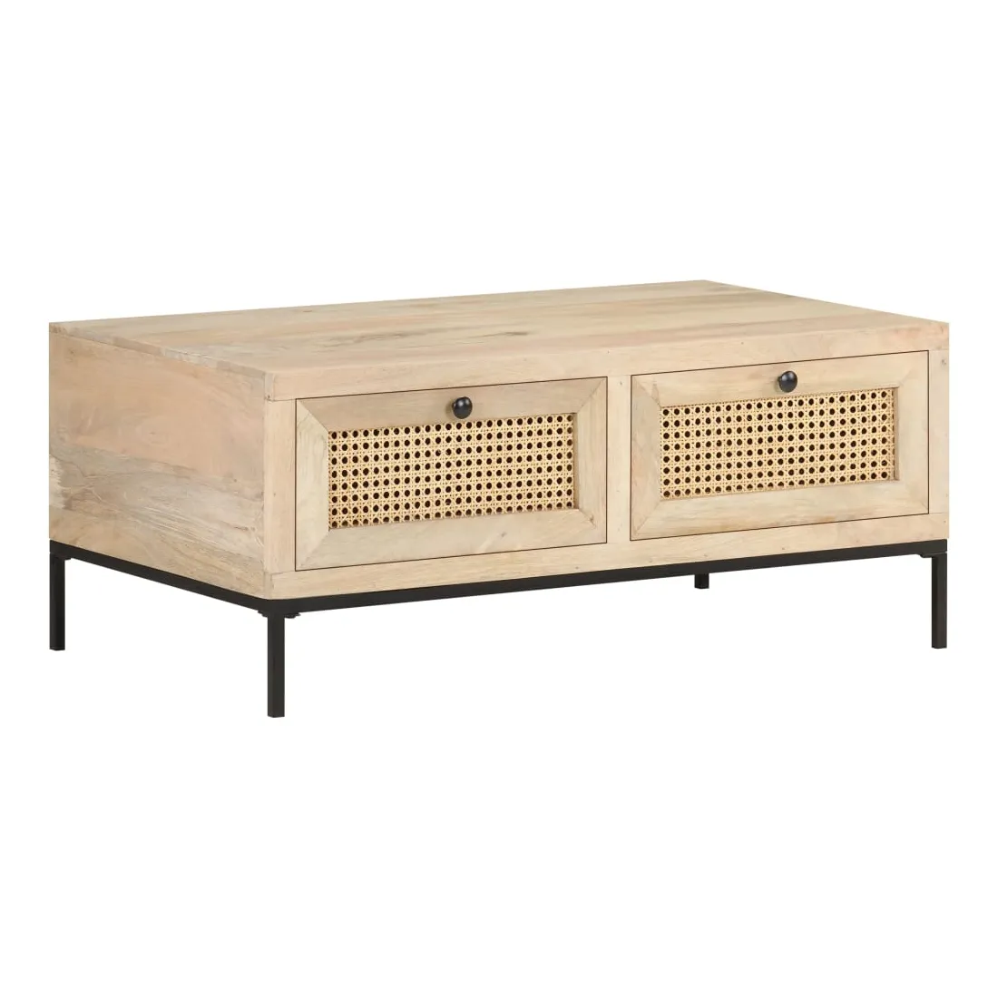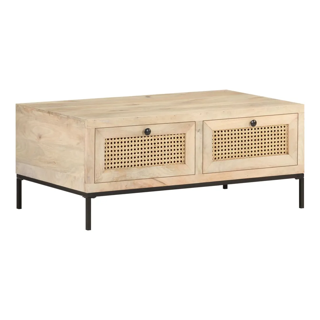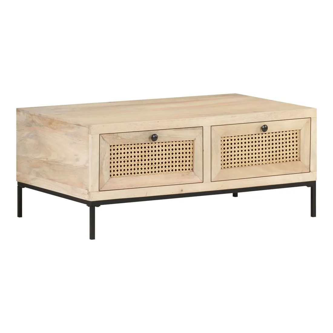 Si vous recherchez une touche de charme rustique à ajouter à votre décoration intérieure, cette table basse en bois de manguier massif sera pour vous. Le bois de manguier massif est un bois dur tropical. Il a d'une part la force de soutenir le poids, et d'autre part résiste à l'usure du temps. De plus, le savoir-faire exquis et les beaux grains de bois rendent chaque pièce de tables de canapé légèrement différente l'une de l'autre. La table d'appoint est équipée d'un grand espace de rangement, donc vous pouvez afficher ou garder bien organisés tous les articles que vous souhaitez. La base en acier contribue à sa robustesse et à sa stabilité. De plus, la table d'appoint présente des motifs de canne tissé à la main sur les tiroirs, ajoutant à son charme rustique. Note importante : les couleurs varient d'une pièce à l'autre, rendant chaque table de salon en bois unique.
