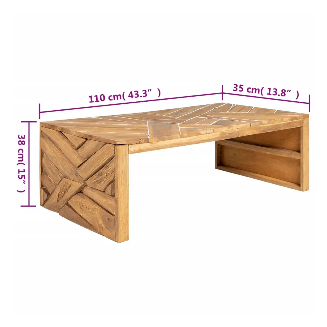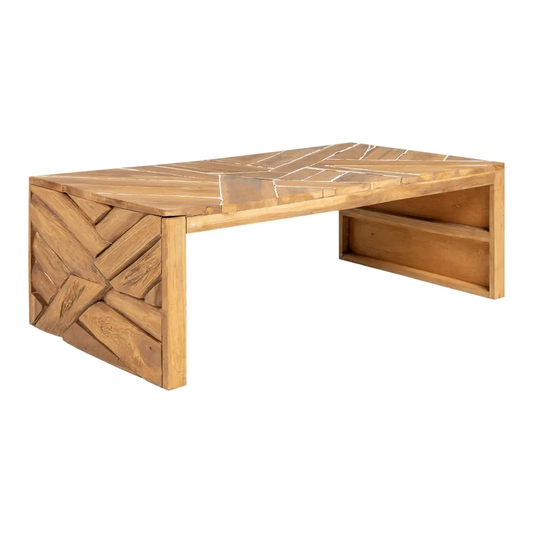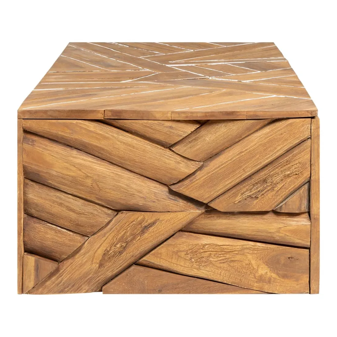 Cette table basse en bois de style érosion sera un supplément unique à votre salon. Elle peut également être utilisée comme table d'appoint, table d'extrémité, etc. Cette table en bois solide et durable est composée de morceaux de bois dur en teck de différentes formes et utilise la forme et la texture naturelles du bois pour créer un effet de design étonnant. La table basse est idéale pour placer des boissons, des paniers de fruit, des objets décoratifs, etc. Bon à savoir :Les couleurs et les grains varient selon les pièces de meubles, ce qui rend chaque pièce unique. La livraison est aléatoire.