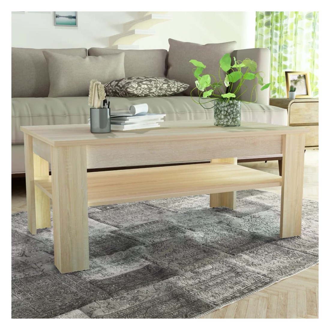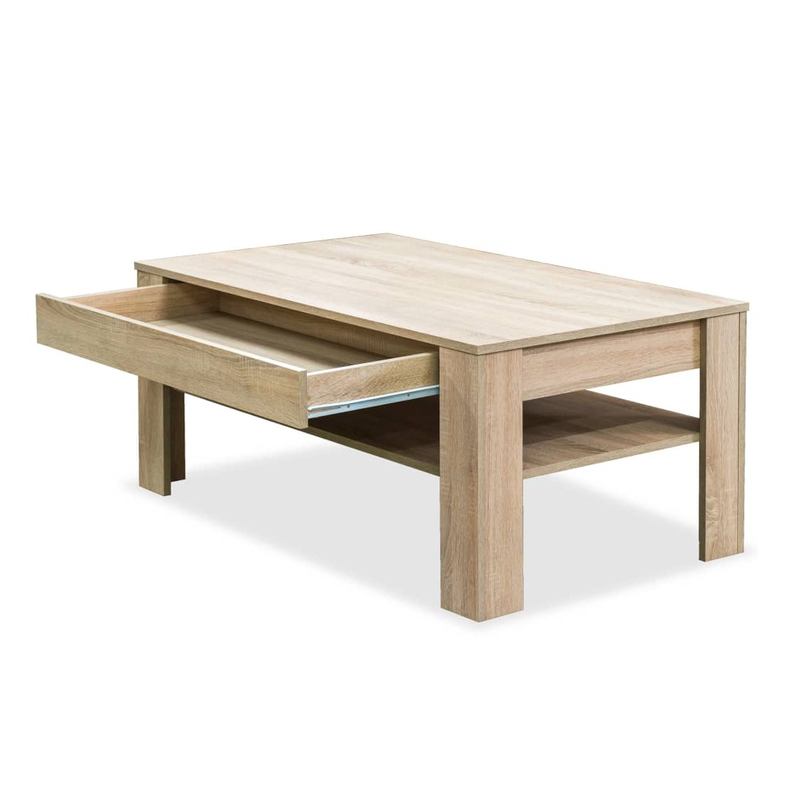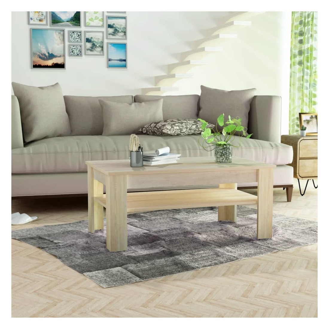 Cette table basse moderne a un design élégant qui conviendra à tous les décors. Il est fait de bois d'ingénierie avec des bords en PVC et est stable et durable. Le tiroir et l'étagère inférieure offrent amplement d'espace pour ranger des livres, des magazines et d'autres objets que vous souhaitez garder à portée de main et ajoutent à la praticité de la table basse ainsi qu'à son aspect moderne. L'assemblage est facile.
