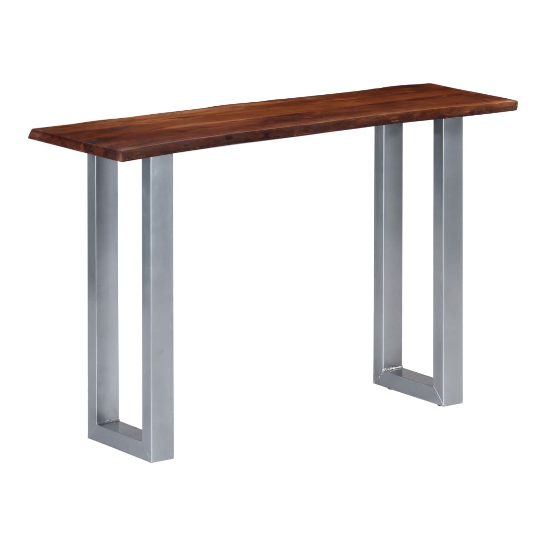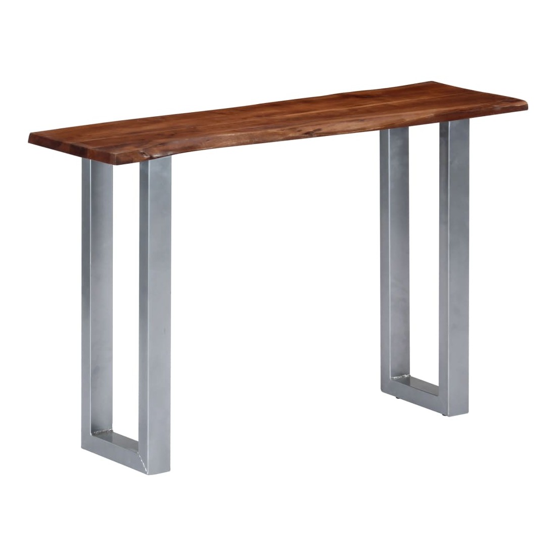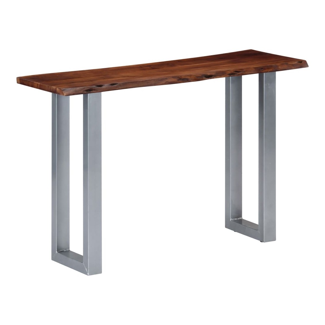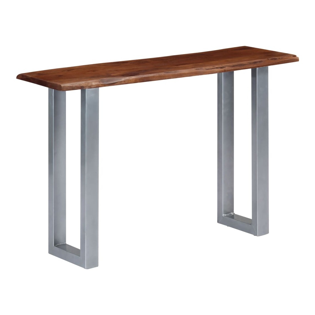 Cette table console au style industriel et décontracté s'intégrera parfaitement dans votre maison ou bureau. Le dessus de table est en bois d'acacia massif et robuste. Ses pieds métalliques uniques en forme de U, recouverts d'un revêtement en poudre, ajoutent au style industriel et rendent la table extrêmement stable. De plus, le bord du bois qui suit la forme naturelle de l'arbre rehausse la beauté de la table. La table console est facile à assembler. Veuillez noter que le bois est un produit naturel et peut présenter des imperfections.