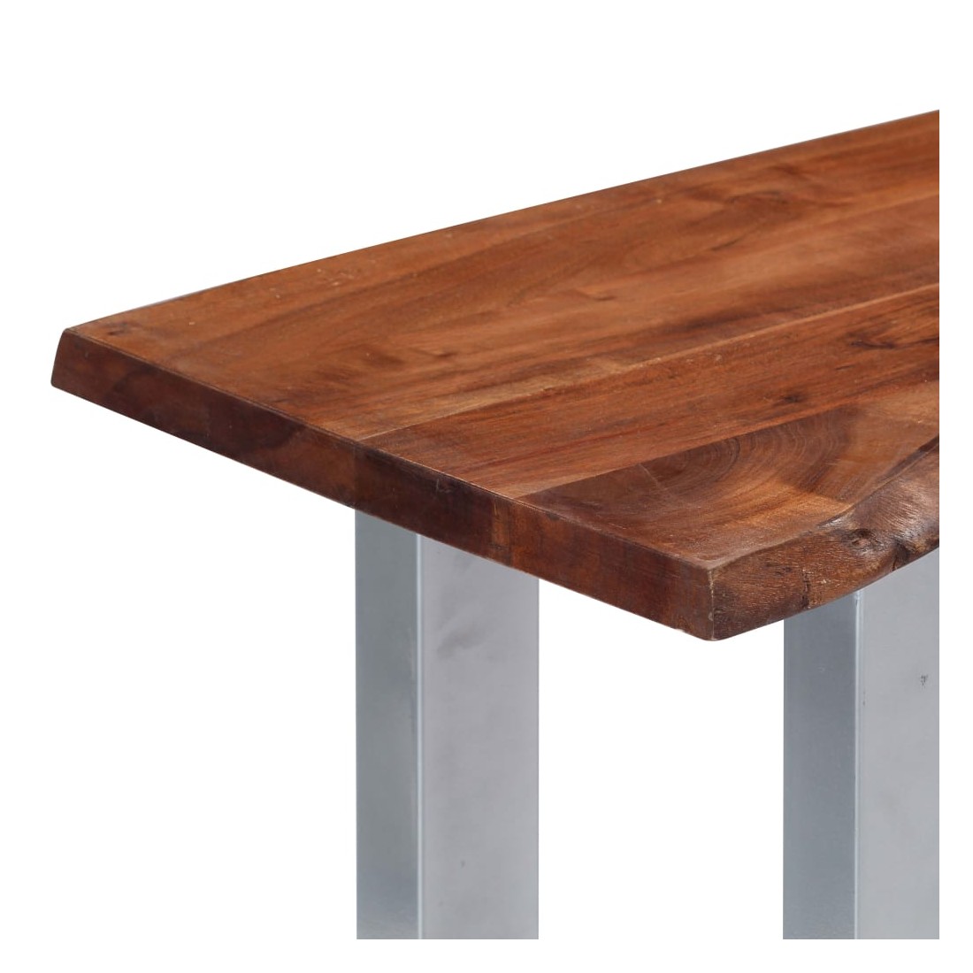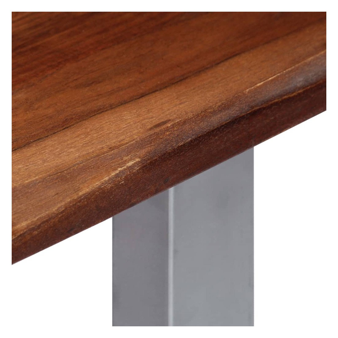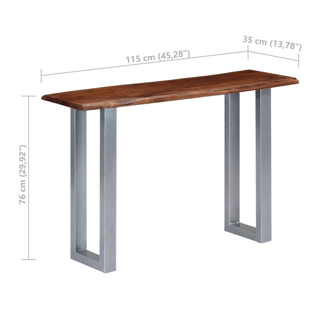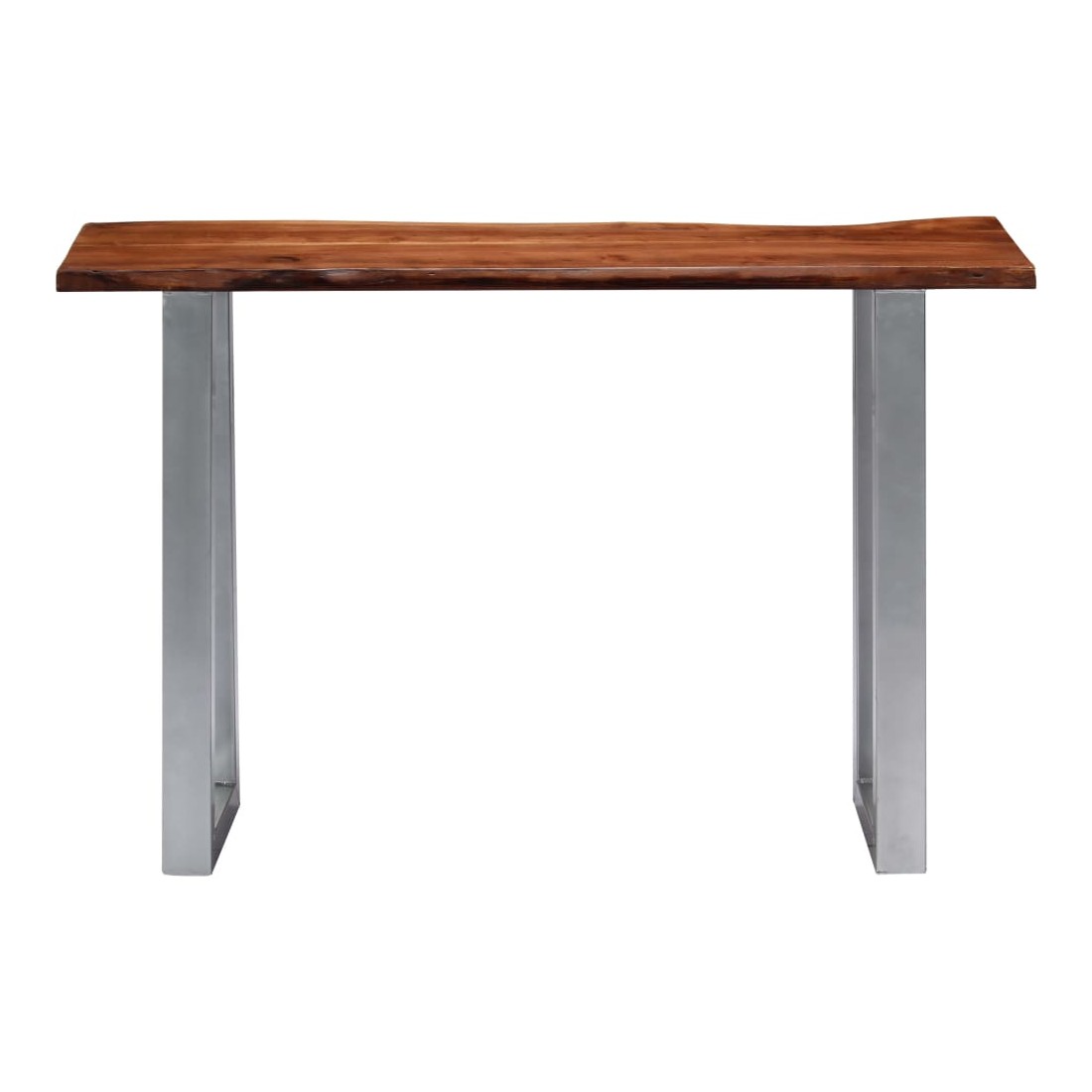 Cette table console au style industriel et décontracté s'intégrera parfaitement dans votre maison ou bureau. Le dessus de table est en bois d'acacia massif et robuste. Ses pieds métalliques uniques en forme de U, recouverts d'un revêtement en poudre, ajoutent au style industriel et rendent la table extrêmement stable. De plus, le bord du bois qui suit la forme naturelle de l'arbre rehausse la beauté de la table. La table console est facile à assembler. Veuillez noter que le bois est un produit naturel et peut présenter des imperfections.