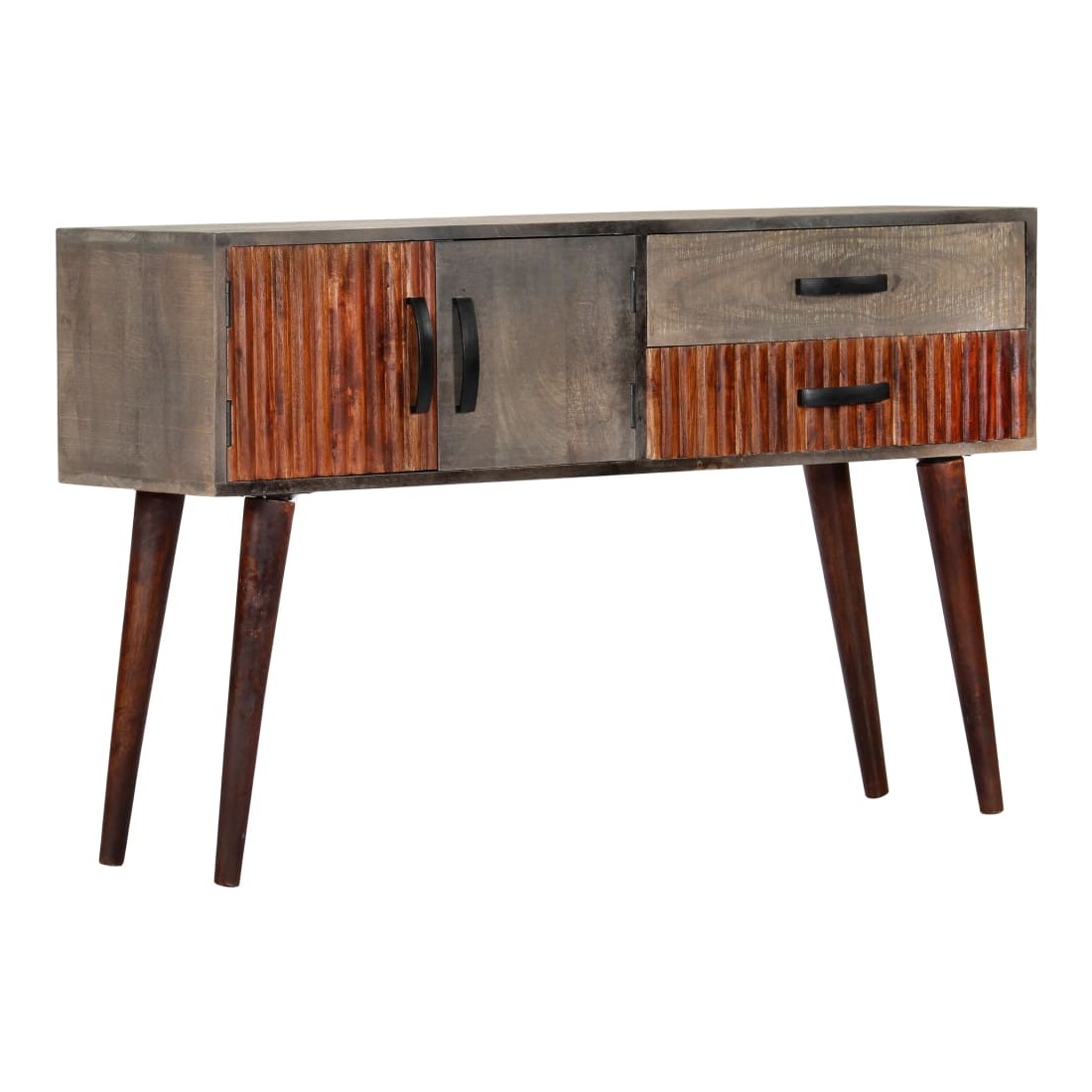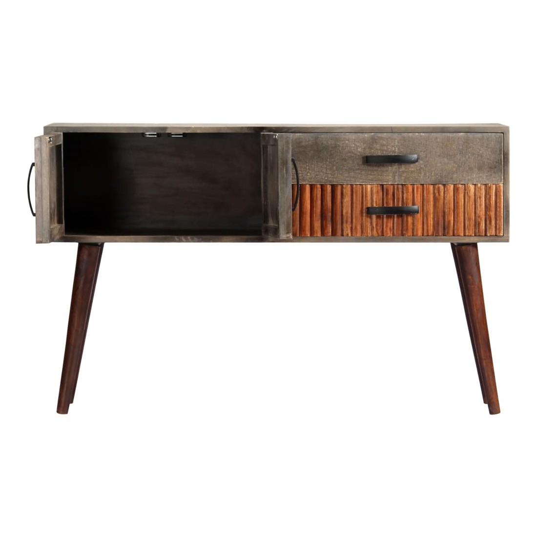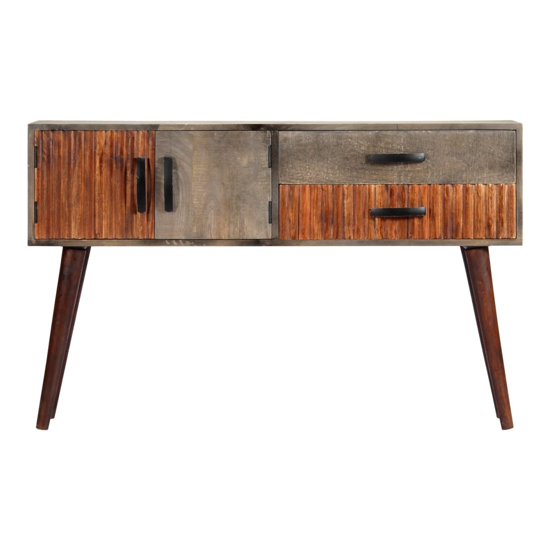 Ajoutez une touche d'élégance à votre décoration intérieure avec notre table console classique ! Fabriquée en bois de manguier massif, cette table console sera un excellent supplément à votre décoration intérieure. Fabriquée en bois de manguier massif brut, la table est dotée d'un solide dessus de table sur lequel vous pouvez placer des objets décoratifs comme des paniers de fruits ou des vases. Des pieds robustes garantissent la stabilité et la longévité de l'appareil, ce qui lui assure des années de service. Le bois de manguier est un bois dur dense et robuste qui a des belles stries et des contours bruns ou dorés sur sa surface. Chaque étape du processus est réalisée avec le plus grand soin, que ce soit le polissage, la peinture ou le laquage. De plus, les 2 portes et les 2 tiroirs offrent suffisamment d'espace pour ranger et mettre à portée de main toutes sortes de petits objets. Remarque importante : Les couleurs varient d'un meuble à l'autre, rendant chacune de nos tables consoles unique ; la livraison est aléatoire.