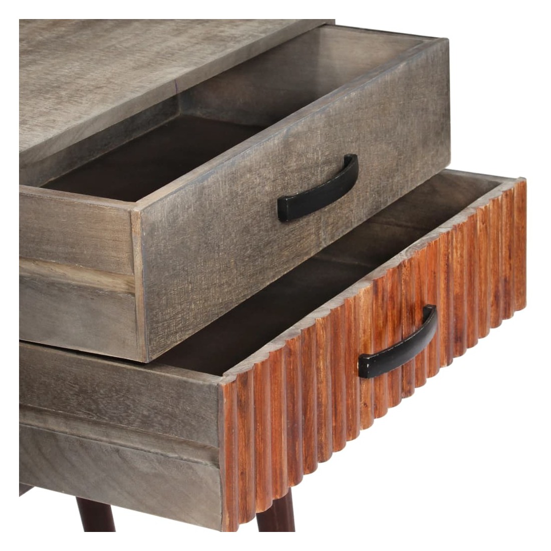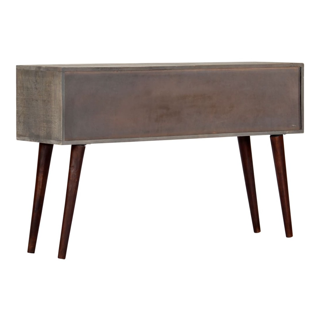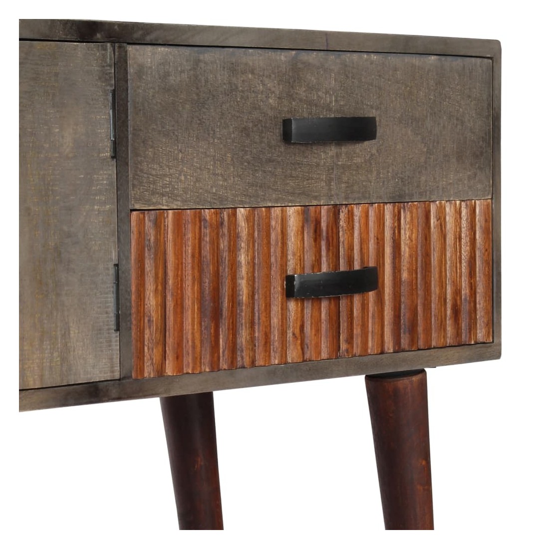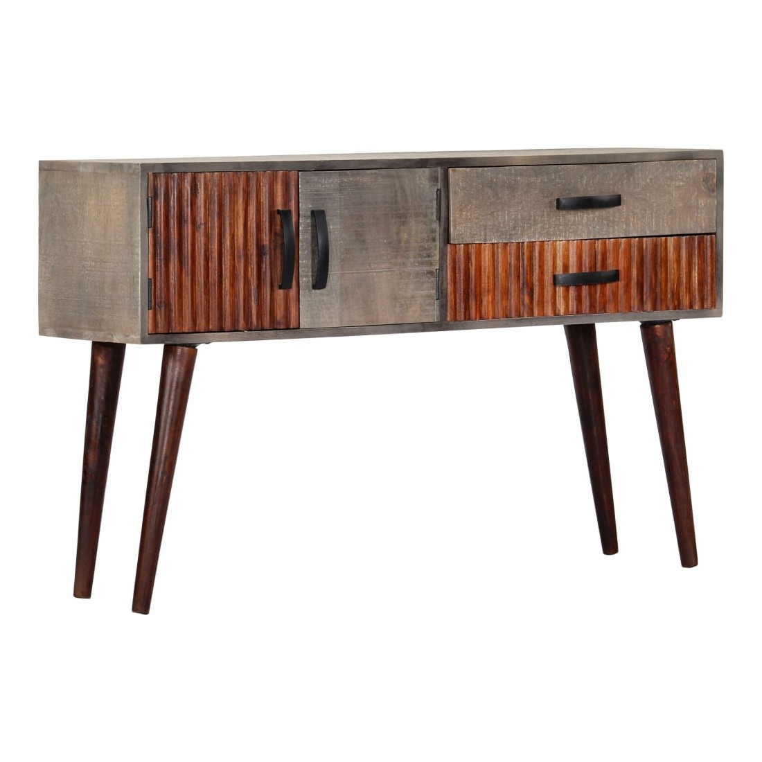 Ajoutez une touche d'élégance à votre décoration intérieure avec notre table console classique ! Fabriquée en bois de manguier massif, cette table console sera un excellent supplément à votre décoration intérieure. Fabriquée en bois de manguier massif brut, la table est dotée d'un solide dessus de table sur lequel vous pouvez placer des objets décoratifs comme des paniers de fruits ou des vases. Des pieds robustes garantissent la stabilité et la longévité de l'appareil, ce qui lui assure des années de service. Le bois de manguier est un bois dur dense et robuste qui a des belles stries et des contours bruns ou dorés sur sa surface. Chaque étape du processus est réalisée avec le plus grand soin, que ce soit le polissage, la peinture ou le laquage. De plus, les 2 portes et les 2 tiroirs offrent suffisamment d'espace pour ranger et mettre à portée de main toutes sortes de petits objets. Remarque importante : Les couleurs varient d'un meuble à l'autre, rendant chacune de nos tables consoles unique ; la livraison est aléatoire.