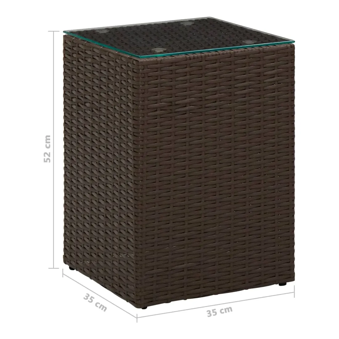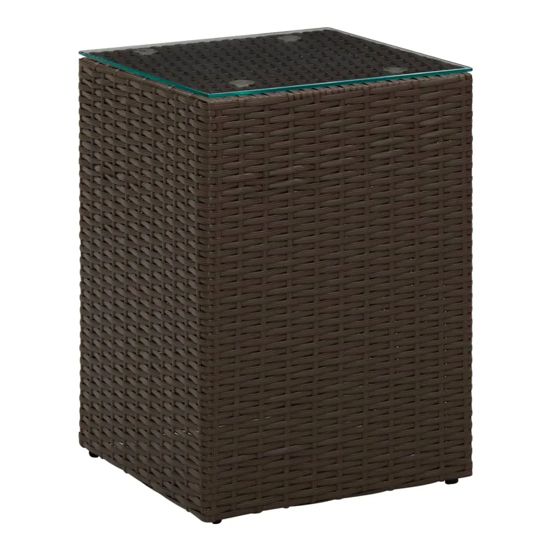 Table d'appoint dessus verre Marron 35x35x52 cm Résine tressée