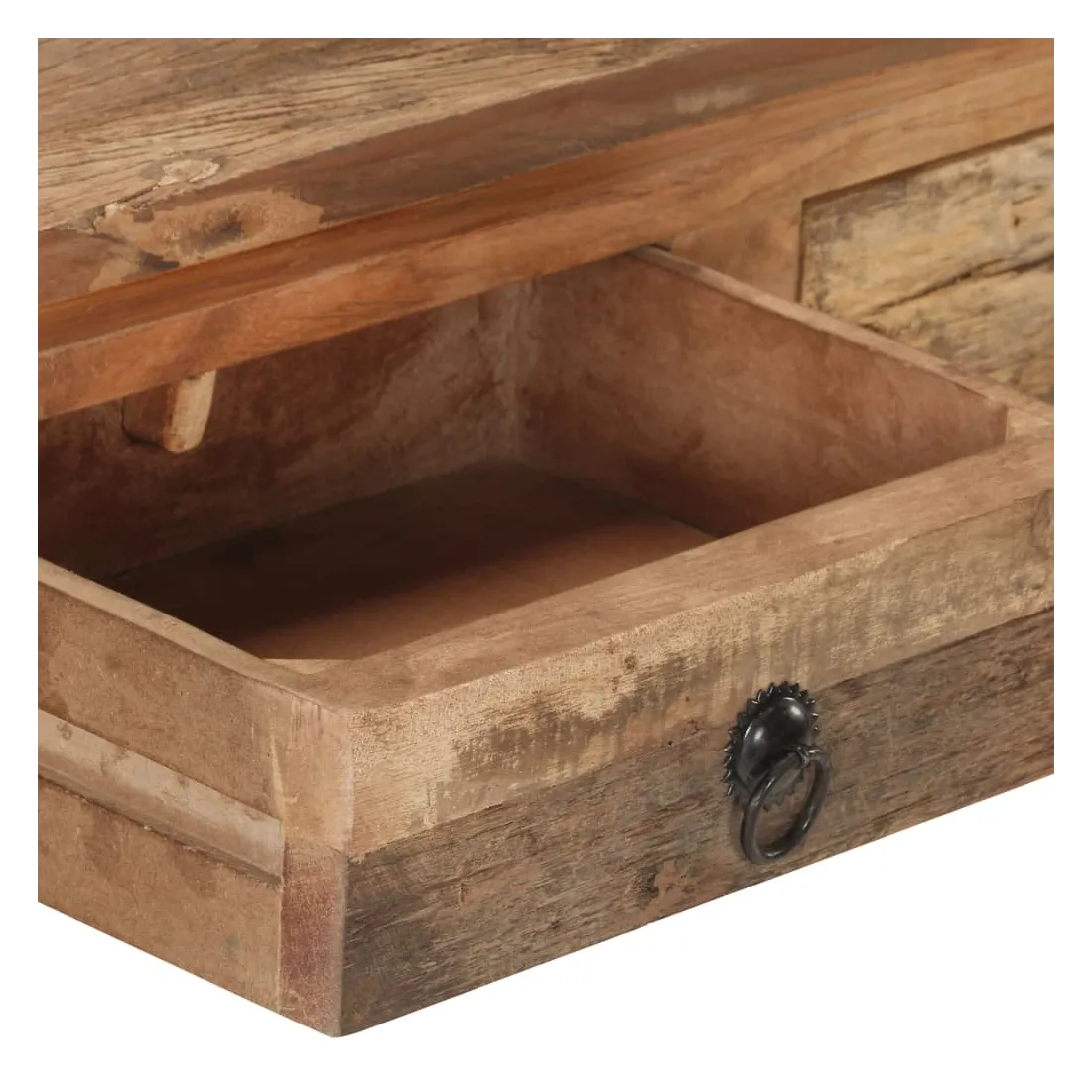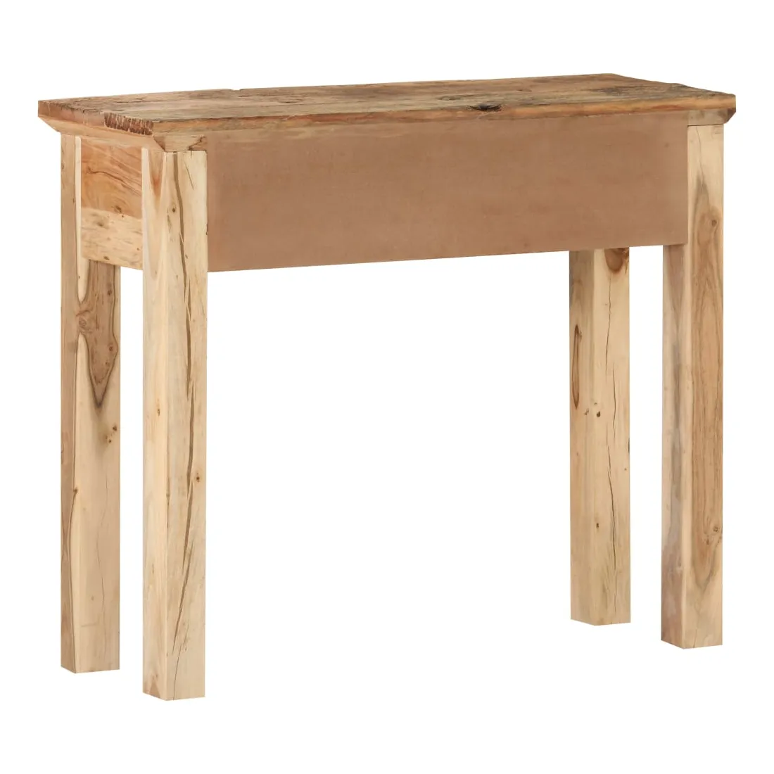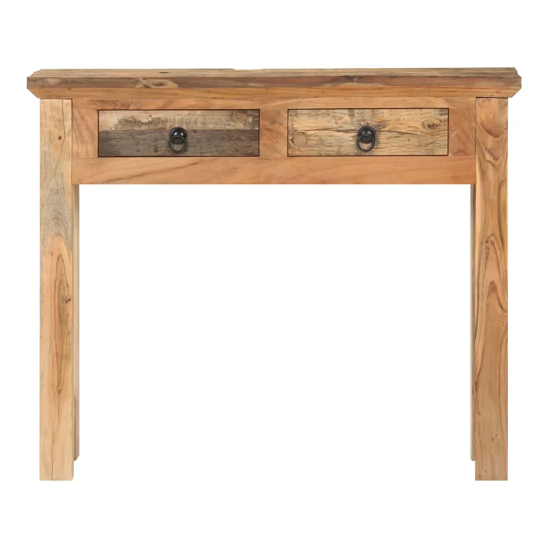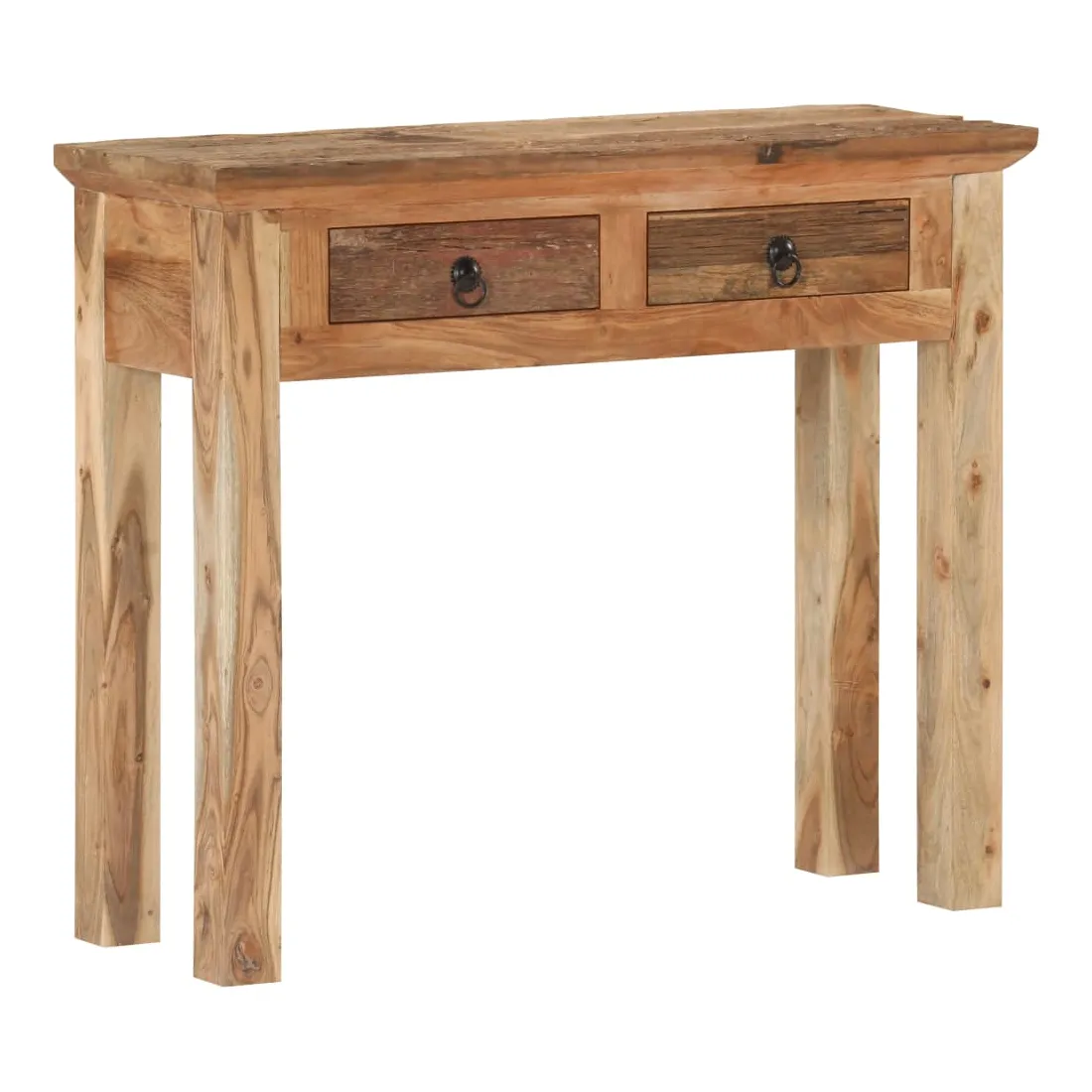 Si vous recherchez une touche de charme rustique à ajouter à votre décoration intérieure, cette table console en bois est pour vous. Cette table d'entrée est faite de bois d’acacia massif et de récupération massif. Le bois de récupération provient de solives, de planchers et de poutres de soutien de vieux bâtiments démolis. Donc, elle peut se composer de différents types de bois comme le pin, le teck, le chêne, le bois de manguier, l’acacia, etc. Cela signifie également que le bois de récupération conserve les caractéristiques de ces types de bois. Le bois de récupération est déjà vieilli, altéré et séché, donc il ne rétrécit pas ou ne se plie pas. Cette table d'appoint est équipée de deux tiroirs, offrant suffisamment d’espace pour garder divers essentiels bien organisés. Remarque importante : la couleur et les veines du bois peuvent varier d'une pièce à l'autre, ce qui rend chaque table de couloir en bois unique.