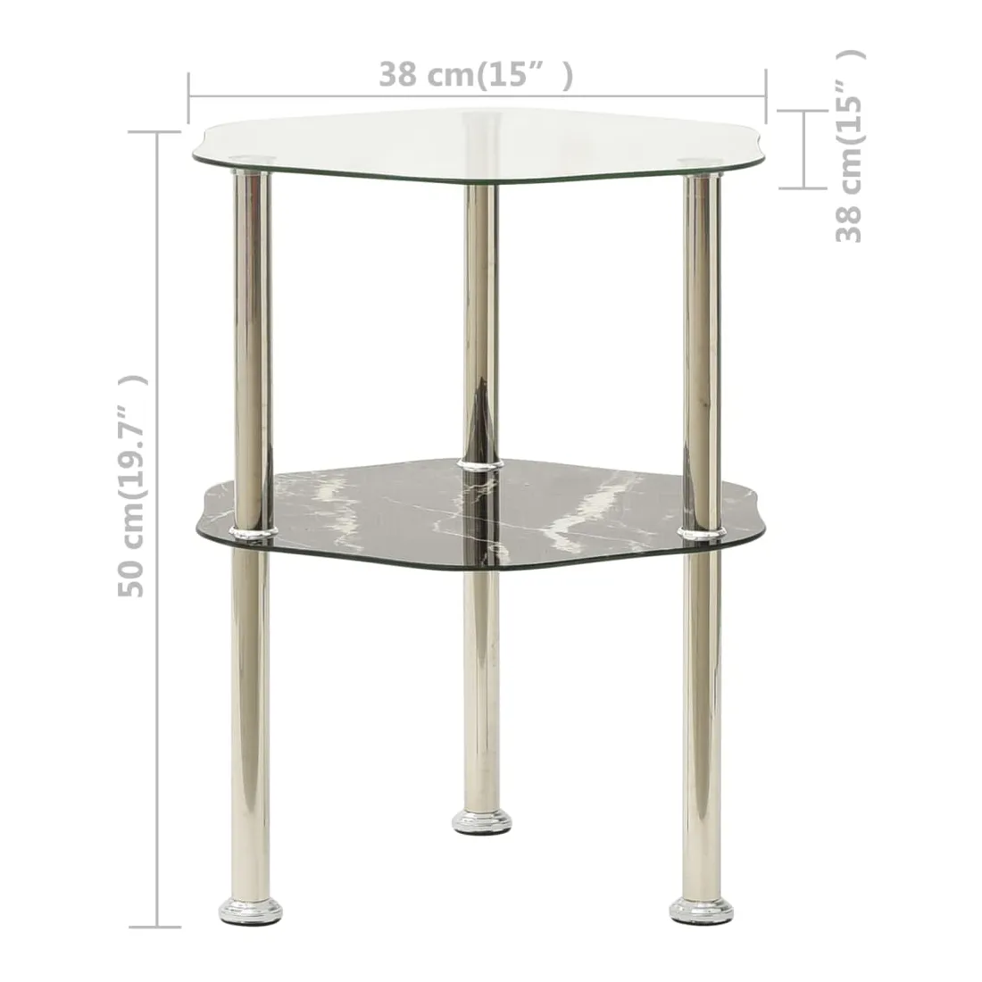 Table 2 niveaux Transparent et noir 38x38x50cm Verre trempé