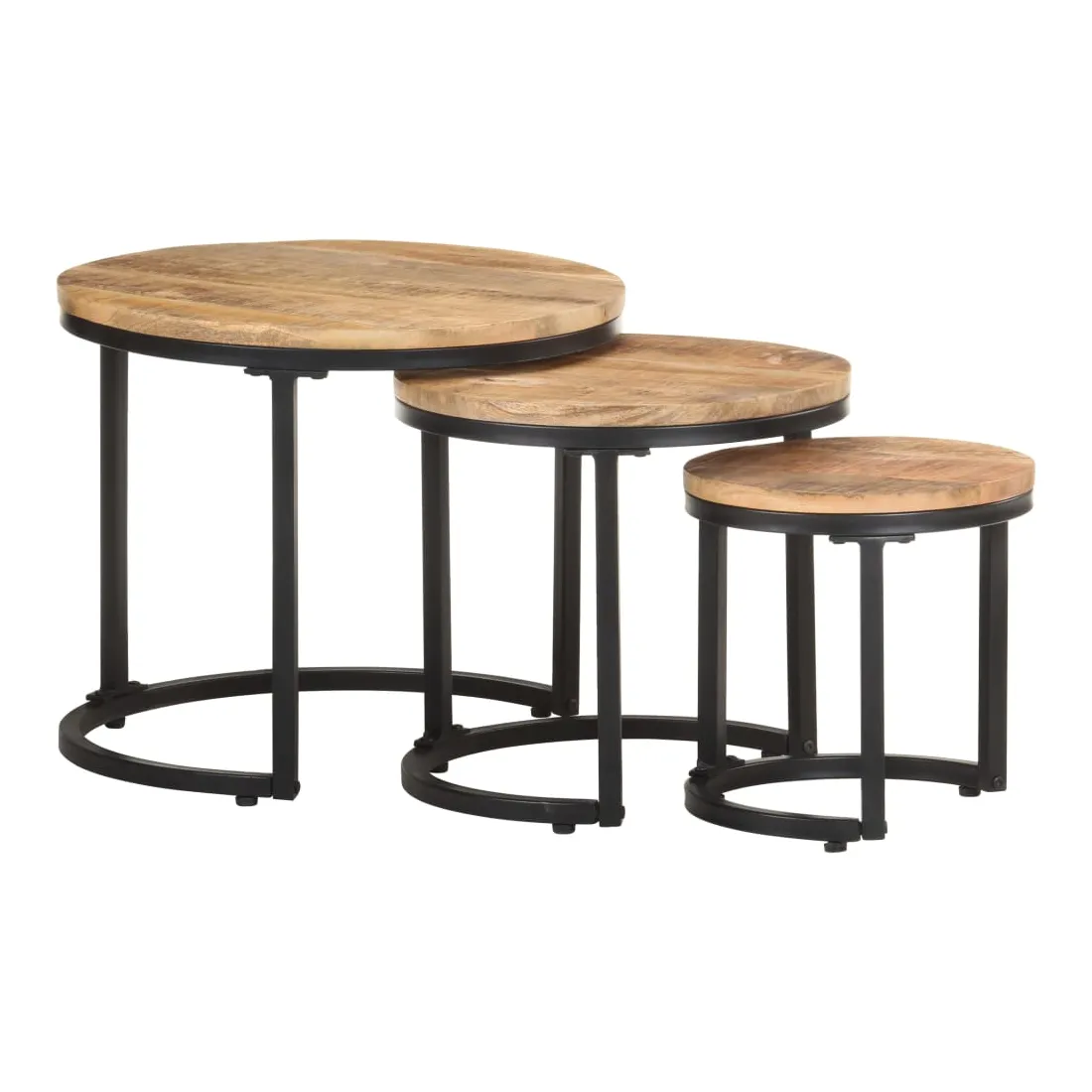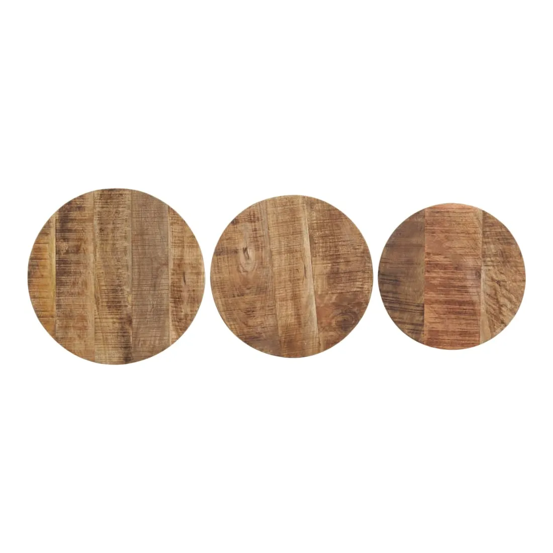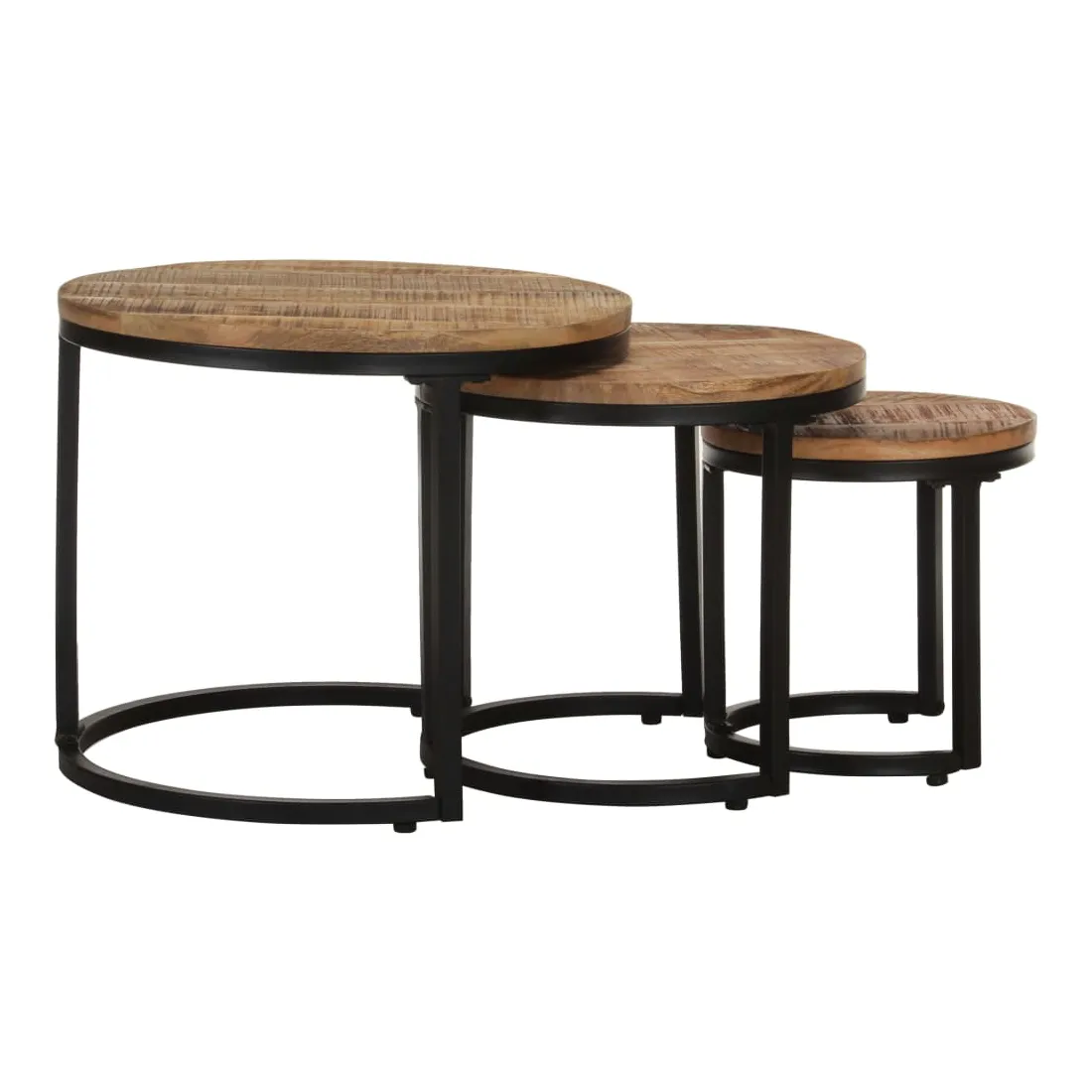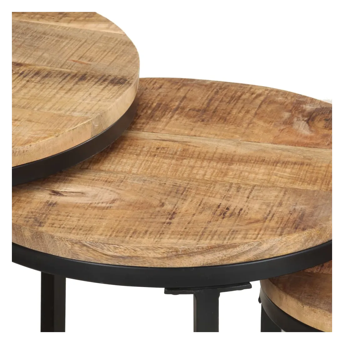 Apportez une touche de charme industriel à votre décoration intérieure avec ces tables d’appoint en bois ! Cet ensemble de tables est en bois de manguier massif. Le bois de manguier massif est un bois dur tropical. Il a la force de soutenir le poids et résiste également à l’usure du temps. De plus, l’artisanat exquis et les belles veines du bois font que chaque pièce soit légèrement différente l'une de l'autre. Le dessus de table solide fournit une surface stable et sécurisée sur laquelle vous pouvez placer vos différents essentiels. La base en fer enduit de poudre ajoute à la solidité et à la stabilité de la table. De plus, vous pouvez étaler ou séparer les tables pour répondre à vos multiples besoins, et les imbriquer ensemble pour économiser de l’espace lorsqu'elles ne sont pas utilisées. Remarque importante : Les couleurs et le grain du bois peuvent varier d'une pièce à l'autre, ce qui rend chaque pièce unique en son genre. La livraison est aléatoire.