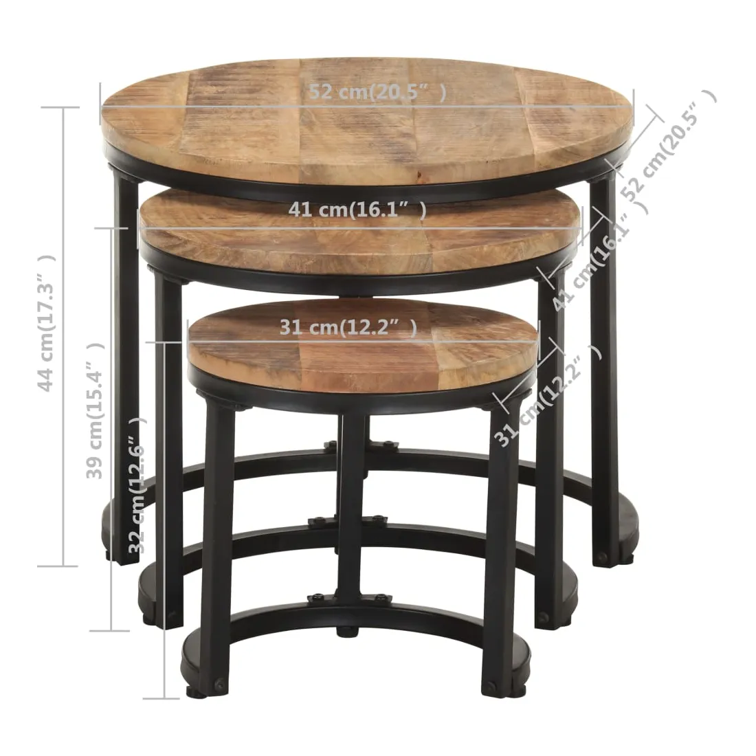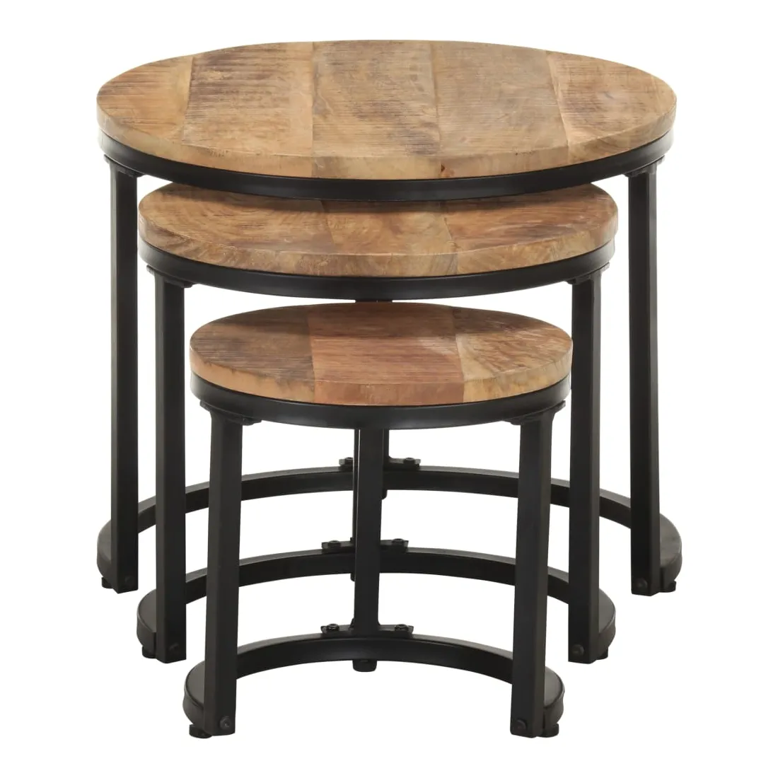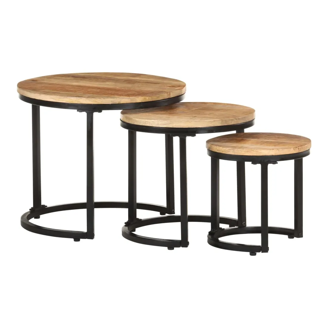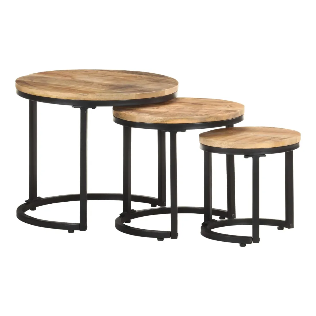 Apportez une touche de charme industriel à votre décoration intérieure avec ces tables d’appoint en bois ! Cet ensemble de tables est en bois de manguier massif. Le bois de manguier massif est un bois dur tropical. Il a la force de soutenir le poids et résiste également à l’usure du temps. De plus, l’artisanat exquis et les belles veines du bois font que chaque pièce soit légèrement différente l'une de l'autre. Le dessus de table solide fournit une surface stable et sécurisée sur laquelle vous pouvez placer vos différents essentiels. La base en fer enduit de poudre ajoute à la solidité et à la stabilité de la table. De plus, vous pouvez étaler ou séparer les tables pour répondre à vos multiples besoins, et les imbriquer ensemble pour économiser de l’espace lorsqu'elles ne sont pas utilisées. Remarque importante : Les couleurs et le grain du bois peuvent varier d'une pièce à l'autre, ce qui rend chaque pièce unique en son genre. La livraison est aléatoire.