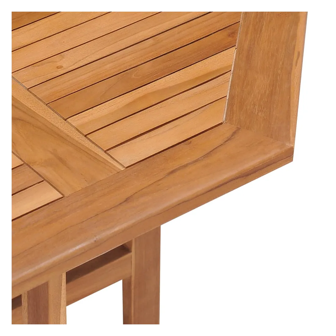 Vous cherchez quelque chose de plus raffiné et accrocheur pour votre espace extérieur ? Cette table à manger en bois est un choix optimal pour vous ! Fabriquée en bois dur de teck extrêmement durable, cette pièce de meuble en teck a été chevronnée, séchée au four puis finement poncée pour lui donner un aspect très lisse. Le bois de teck est connu pour sa résistance exceptionnelle aux intempéries, ce qui le rend bien plus adapté aux meubles de jardin que tout autre type de bois. Le bois de teck est le choix idéal si vous souhaitez acheter une pièce de meubles de jardin durable. Grâce au design pliable, la table de jardin peut être facilement pliée pour économiser de l'espace lorsqu'elle n'est pas utilisée. Remarque : afin de prolonger la durée de vie des meubles d'extérieur, nous vous r