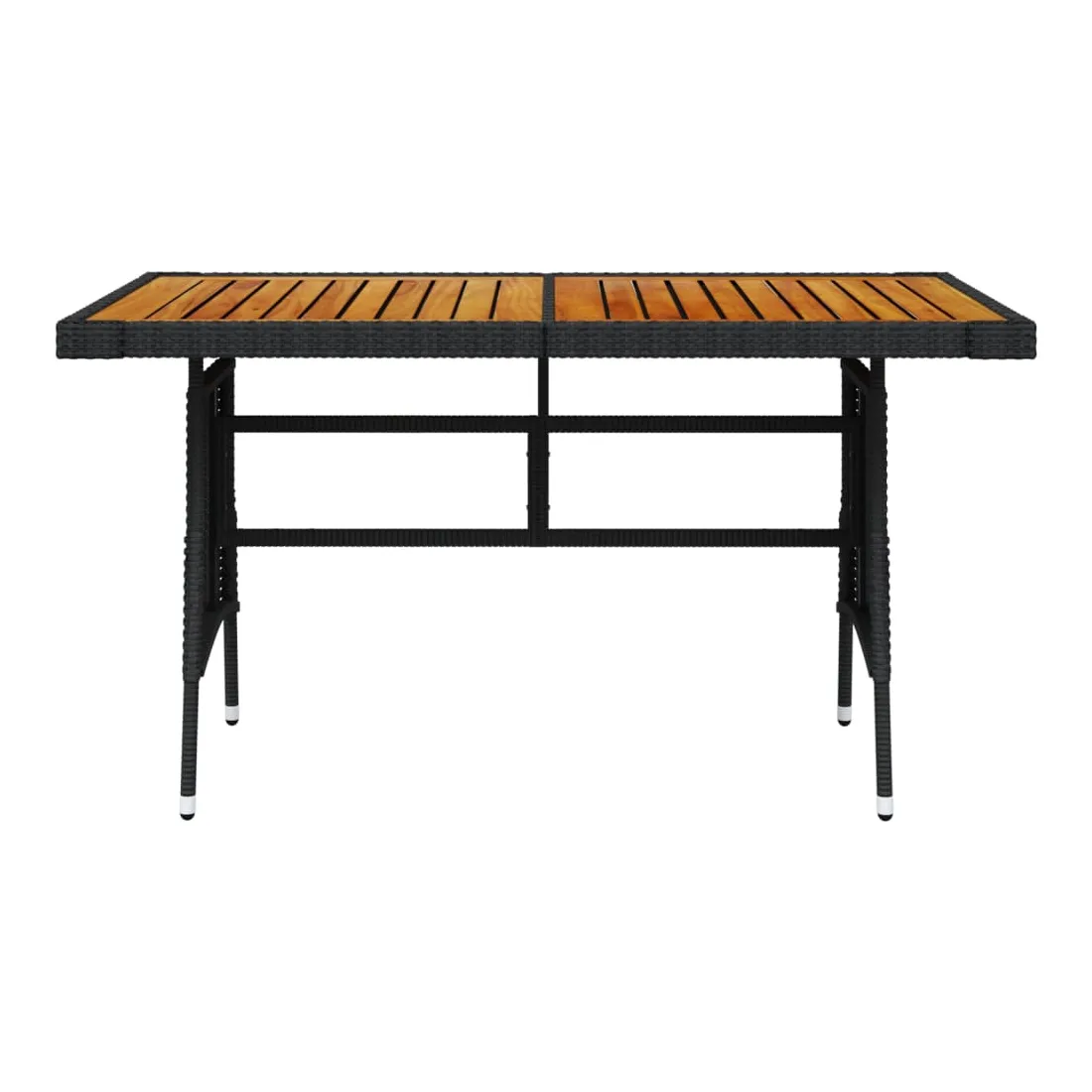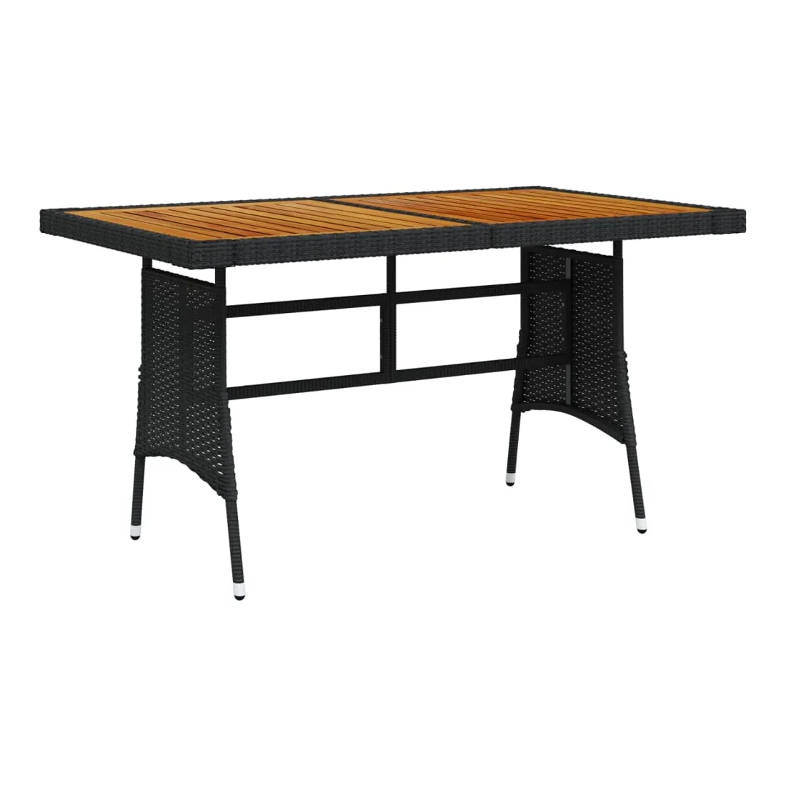 Renouvelez votre coin repas avec cette table de jardin ! Elle ajoute un charme élégant et rustique à votre espace de vie extérieur. Vous pouvez profiter du repas sous les étoiles ou au soleil avec cette table à manger. La table de patio est dotée d'un dessus en bois d'acacia massif et d'un cadre en acier enduit de poudre, ce qui la rend robuste et durable. La table d'extérieur est recouverte de résine tressée, ce qui la rend résistante aux intempéries. Grâce à la construction légère en résine tressée, vous pouvez la déplacer facilement. Remarque : afin de prolonger la durée de vie des meubles d'extérieur, nous vous recommandons de les protéger avec une housse imperméable.