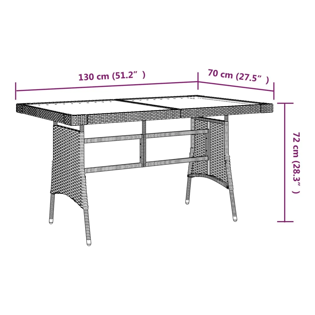 - Dimensions : 130 x 70 x 72 cm (L x l x H)