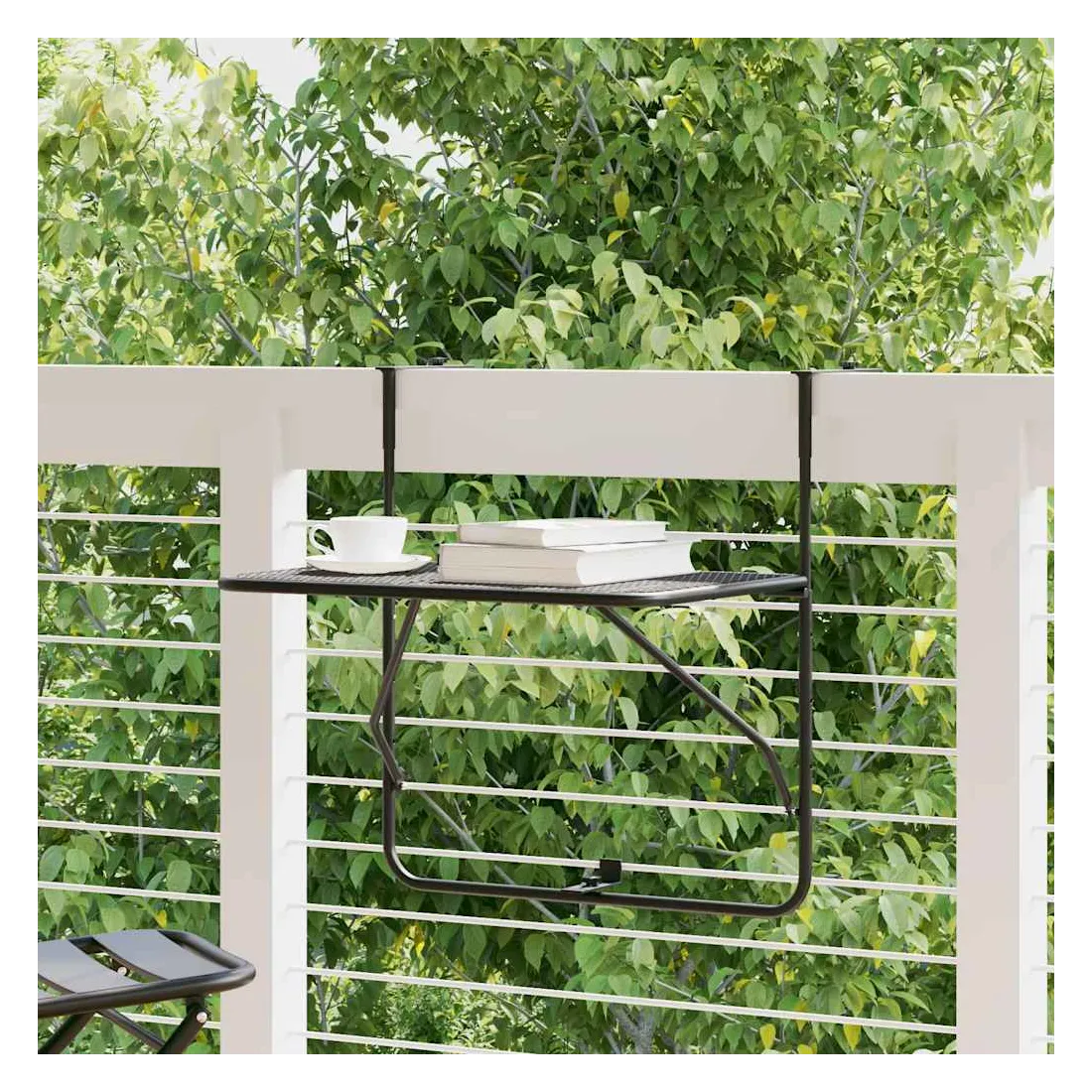 Cette table de balcon est destinée à être un excellent supplément à votre balcon. Elle sert de table basse pour placer votre boisson ou fonctionne comme un plan de travail pratique pour garder les articles. La table d’appoint est en acier robuste, résistant aux intempéries et stable. Son design maillé et sa finition en revêtement noir ajoutent une touche de charme industriel à votre balcon. La table est également facilement pliable pour économiser de l’espace lorsqu'elle n’est pas utilisée.