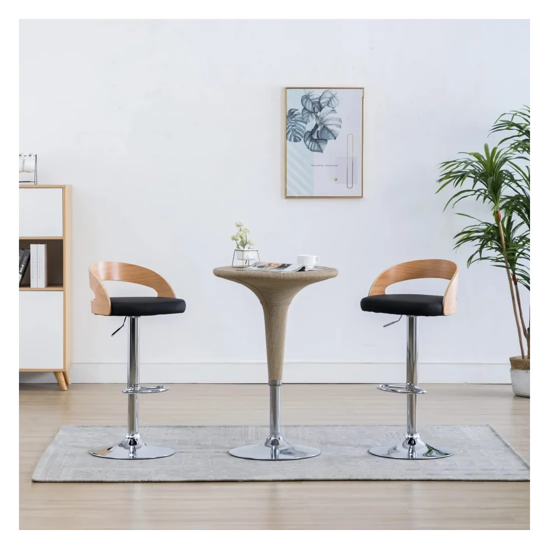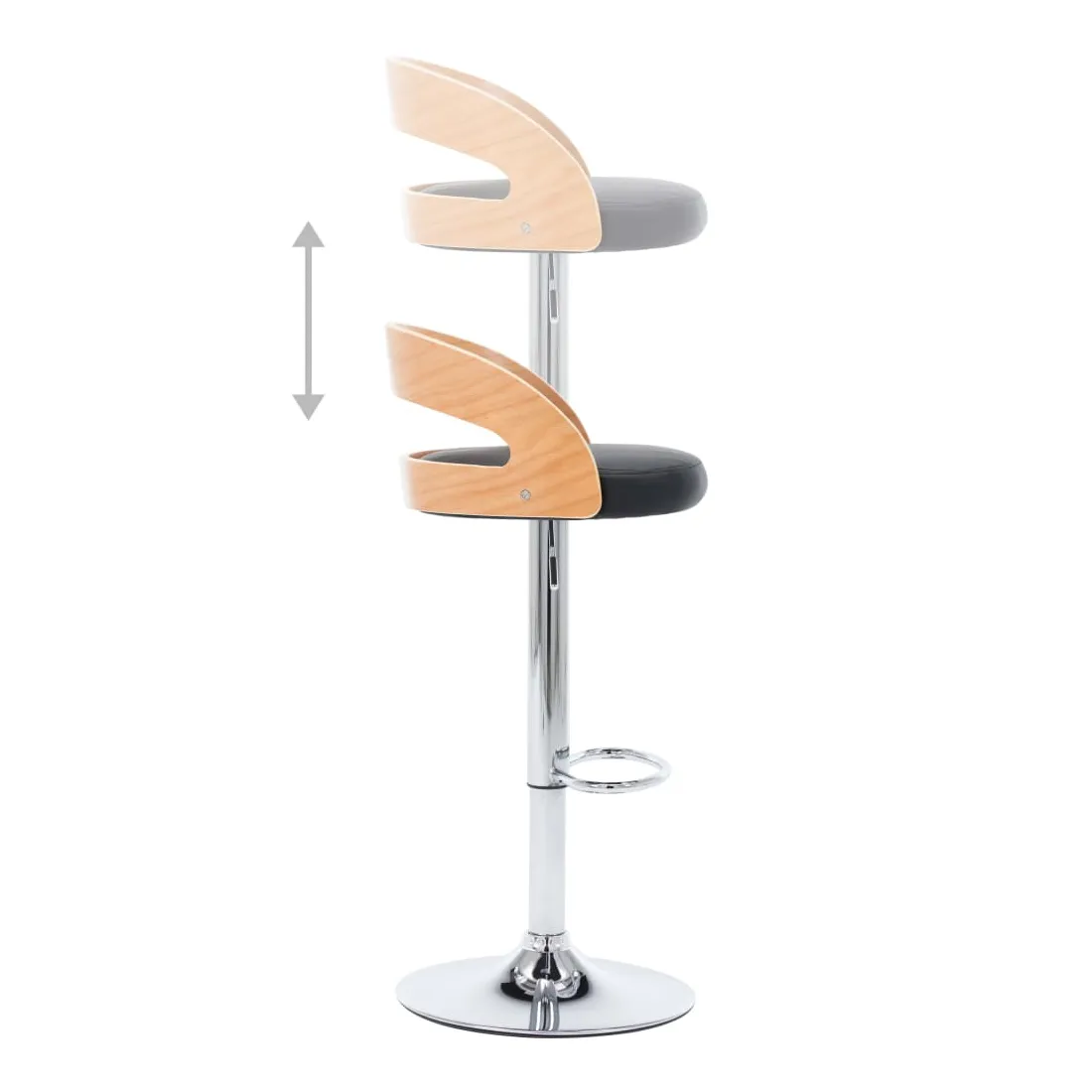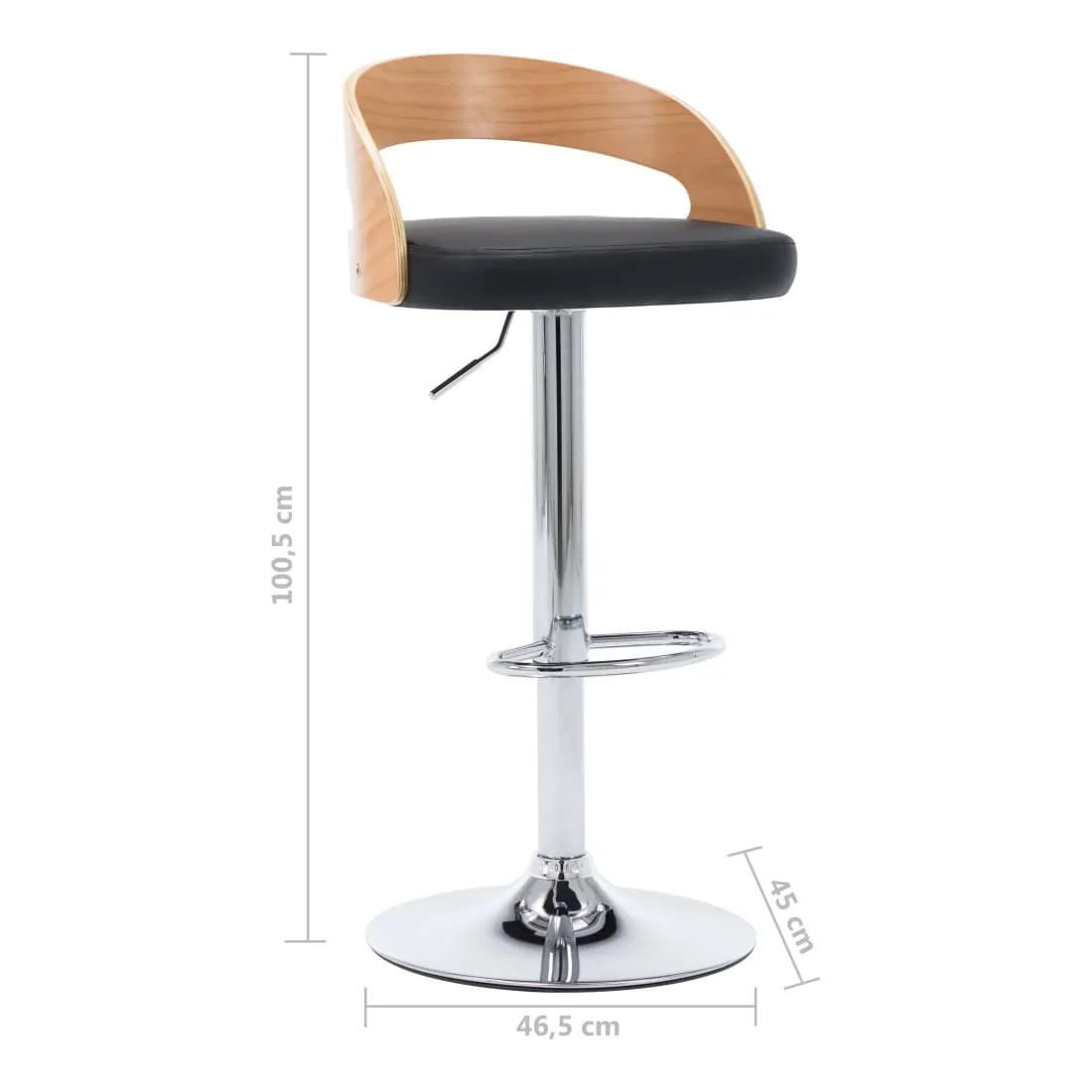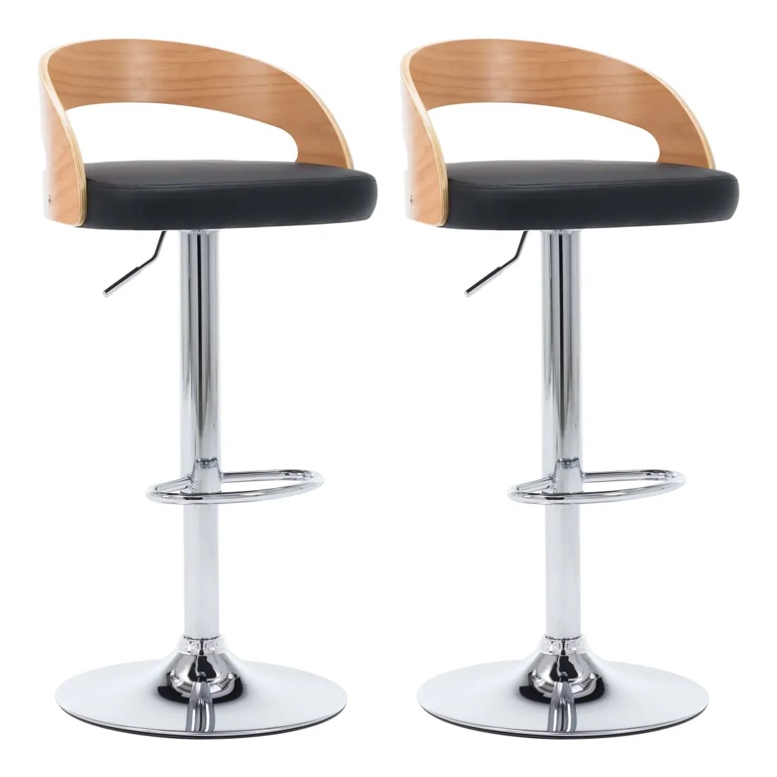 Ajoutez instantanément un goût moderne impressionnant à votre décoration intérieure avec nos élégantes chaises de bar ! Cet ensemble de chaises de comptoir, avec un design contemporain frappant, est non seulement esthétique, mais aussi très confortable. Le siège, recouvert de similicuir de haute qualité, est confortablement rembourré. Le cadre en bois courbé ajoute à la beauté et au style uniques. Le cadre en métal est très robuste, tandis que le repose-pied intégré et la conception ergonomique ajoutent au confort d'assise. Grâce au mécanisme de levage à gaz, les chaises de pub peuvent être réglées en hauteur. Cet ensemble de chaises de bar de restaurant fera un excellent ajout à tout bar ou salle à manger. La livraison comprend 2 chaises de bar.
