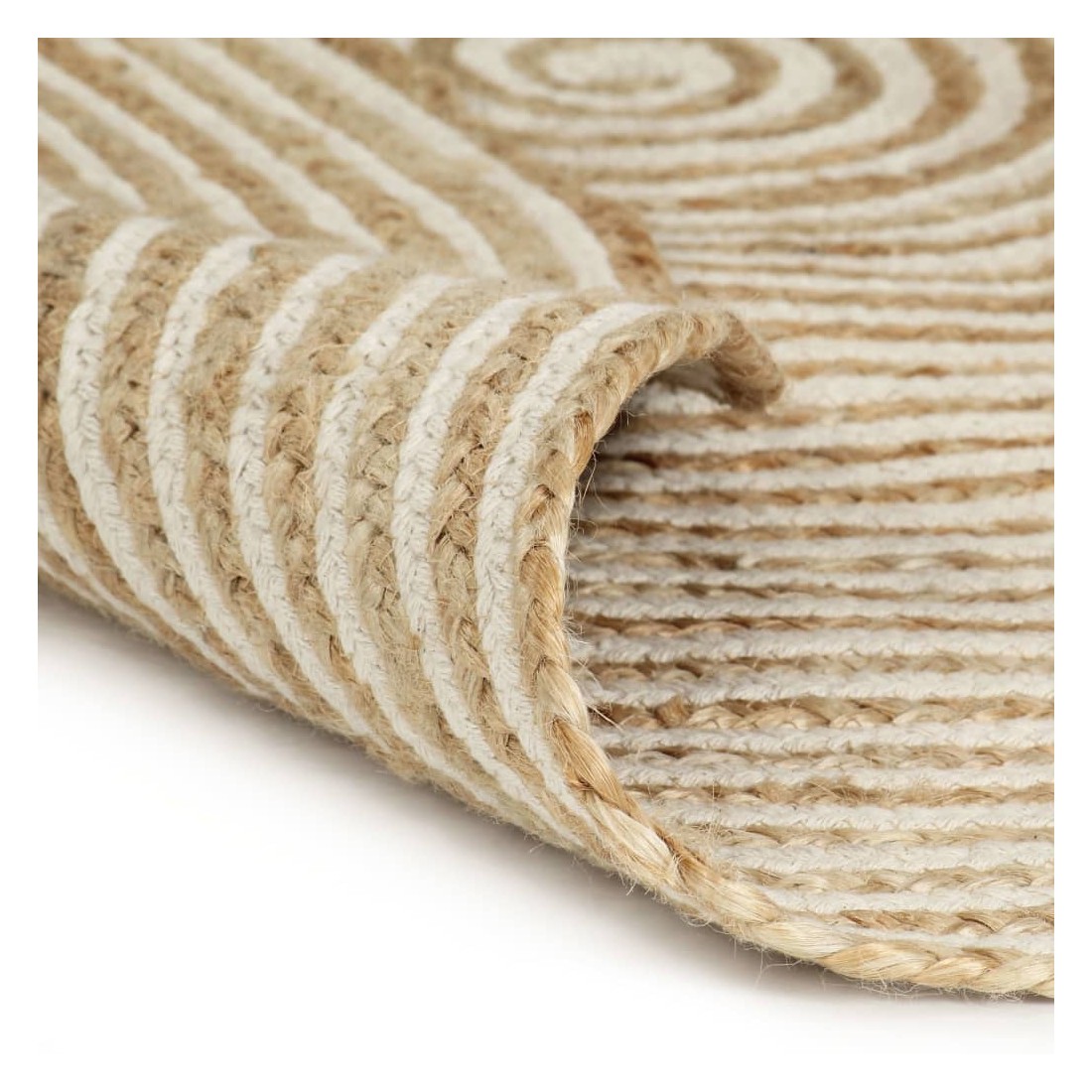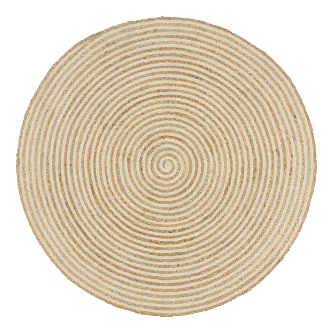 Tapis fait à la main Jute avec design de spirale Blanc 120 cm