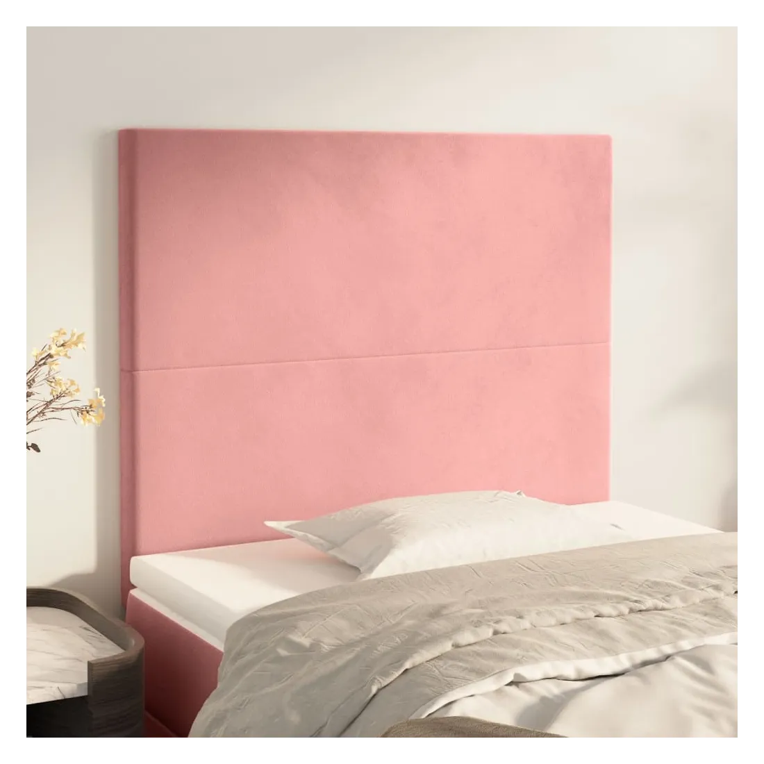 Cette tête de lit classique au design élégant complète parfaitement votre cadre de lit et s'adapte à toutes les chambres. Velours doux : Le velours est un tissu doux et luxueux qui se distingue par ses fibres denses et uniformément coupées et lisses. Le velours offre un toucher doux et agréable.Pieds robustes et stables : Les pieds en bois assurent robustesse et stabilité.Hauteur réglable : La tête de lit est réglable en hauteur selon vos préférences.Excellent soutien : La tête de lit vous offre un excellent soutien dorsal lorsque vous êtes assis dans votre lit pour lire ou regarder la télévision. Remarque :La livraison comprend uniquement la tête de lit. Le cadre de lit et le matelas ne sont pas inclus. Vous pouvez consulter notre boutique pour les cadres et matelas assortis.Chaque produit est livré avec un manuel de montage dans la boîte pour un assemblage facile.