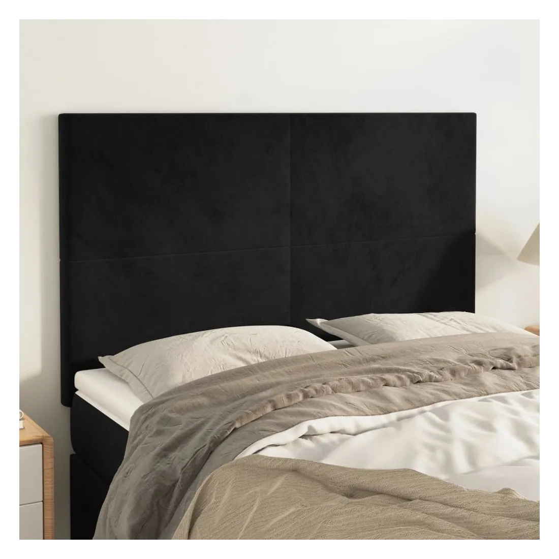 Cette tête de lit classique au design élégant complète parfaitement votre cadre de lit et s'adapte à toutes les chambres. Velours doux : Le velours est un tissu doux et luxueux qui se distingue par ses fibres denses et uniformément coupées et lisses. Le velours offre un toucher doux et agréable.Pieds robustes et stables : Les pieds en bois assurent robustesse et stabilité.Hauteur réglable : La tête de lit est réglable en hauteur selon vos préférences.Excellent soutien : La tête de lit vous offre un excellent soutien dorsal lorsque vous êtes assis dans votre lit pour lire ou regarder la télévision. Remarque :La livraison comprend uniquement la tête de lit. Le cadre de lit et le matelas ne sont pas inclus. Vous pouvez consulter notre boutique pour les cadres et matelas assortis.Chaque produit est livré avec un manuel de montage dans la boîte pour un assemblage facile.