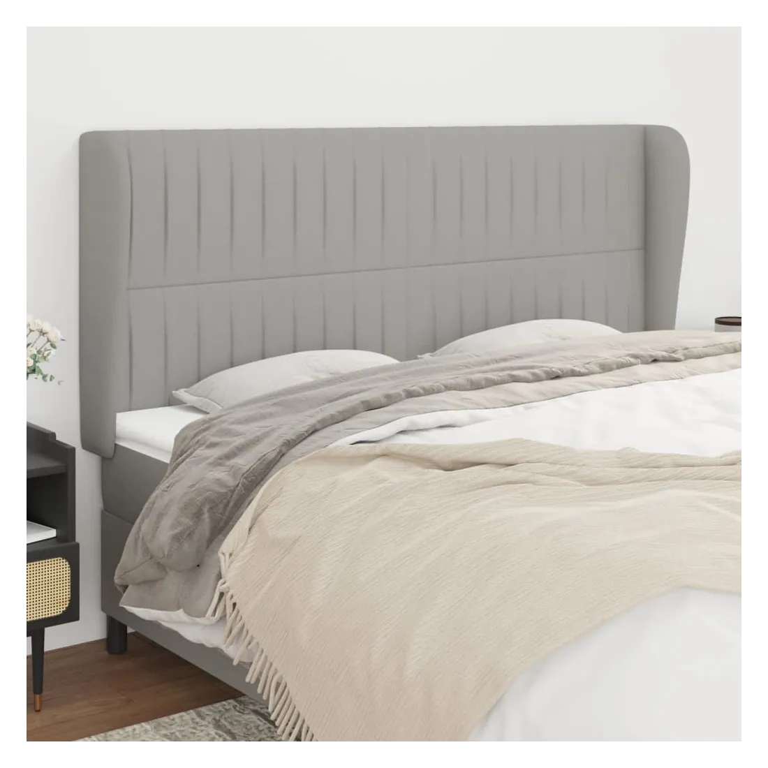 Tête de lit avec oreilles Gris clair 163x23x118/128 cm Tissu
