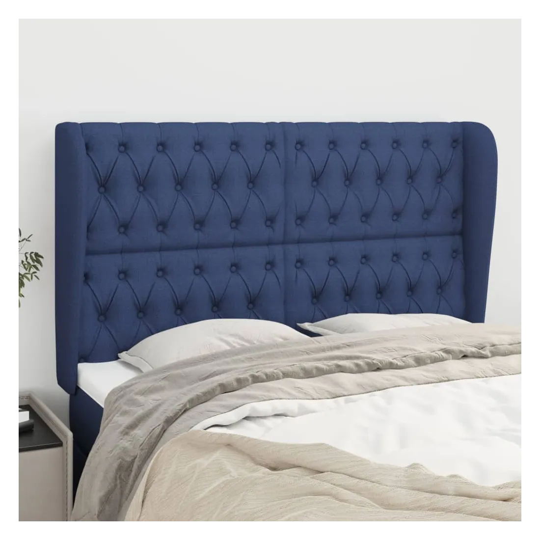 Tête de lit avec oreilles Bleu 163x23x118/128 cm Tissu