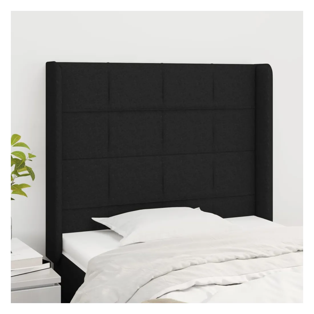 Tête de lit avec oreilles Noir 103x16x118/128 cm Tissu