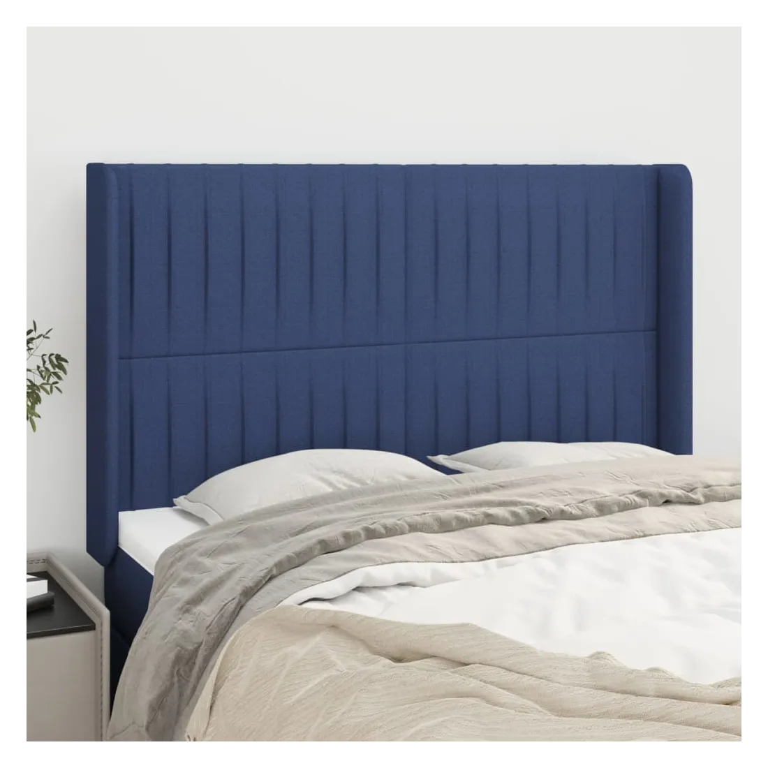 Tête de lit avec oreilles Bleu 147x16x118/128 cm Tissu