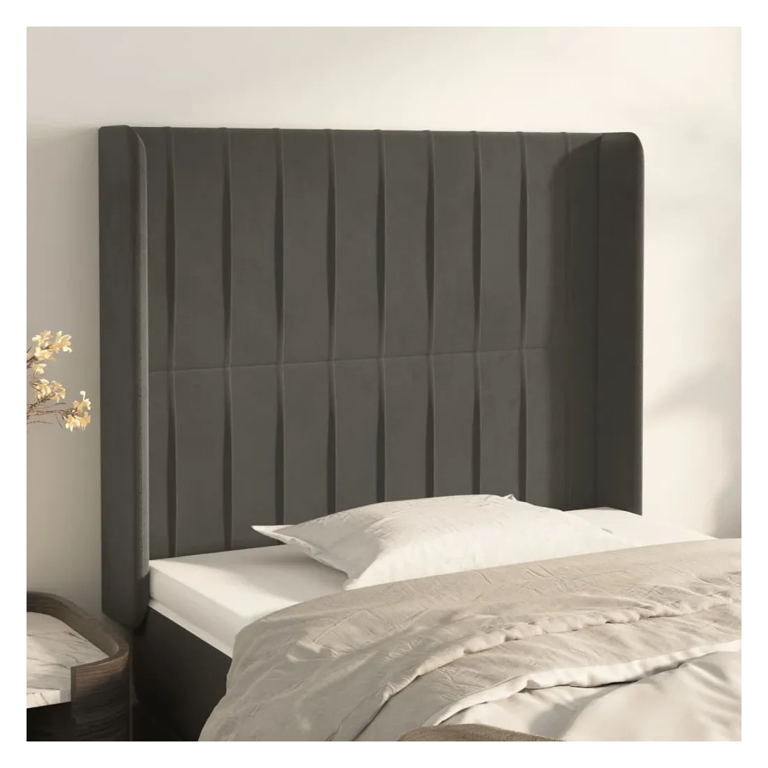 Tête de lit avec oreilles Gris foncé 103x16x118/128 cm Velours