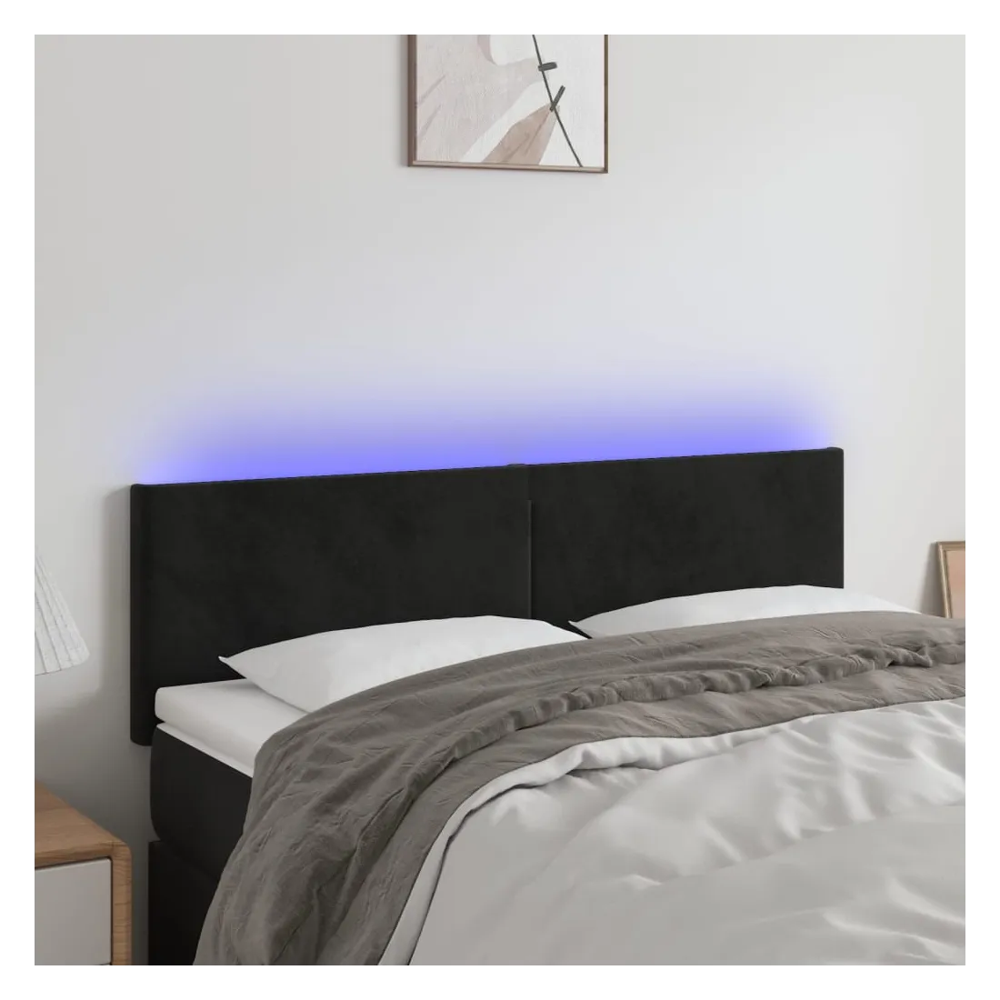 Cette tête de lit à LED classique, au design élégant, donne à votre cadre de lit une touche de modernité étonnante et convient parfaitement à toute chambre à coucher. Velours doux : le velours est un tissu doux et luxueux qui se reconnaît à son tas dense de fibres uniformément coupées qui ont une touche lisse. Le tissu en velours présente un toucher doux distinctif, ce qui le rend confortable au toucher.LED colorée : apportez de l'éclairage dans l'obscurité avec des lumières LED colorées !Hauteur réglable : la tête de lit est réglable en hauteur selon vos préférences.Excellent soutien : la tête de lit vous offre un excellent soutien du dos lorsque vous êtes assis dans votre lit pour lire ou regarder la télévision.Bande à LED découpable : cette bande à LED flexible peut être ajustée en longueur. Le symbole des ciseaux indique où la bande peut être coupée en toute sécurité sans l'endommager. Remarque :Seule la partie avec un symbole de ciseaux peut être coupée et seule la partie avec l'USB continuera à fonctionner comme avant.Chaque produit est livré avec un manuel de montage dans la boîte pour un montage facile.Ce produit est doté d'un connecteur USB, mais la source d'alimentation certifiée de USB 5V n'est pas incluse.
