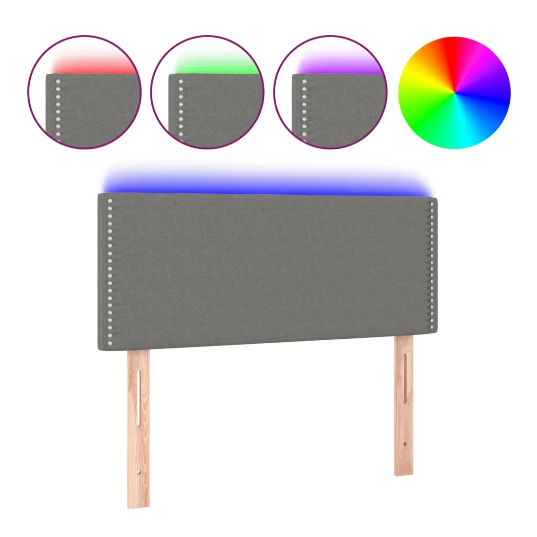 Cette tête de lit à LED classique, au design élégant, donne à votre cadre de lit une touche de modernité étonnante et convient parfaitement à toute chambre à coucher. Tissu durable : le tissu présente un aspect simple et épuré, et il est respirant et durable. LED colorée : apportez de l'éclairage dans l'obscurité avec des lumières LED colorées ! Hauteur réglable : la tête de lit est réglable en hauteur selon vos préférences. Excellent soutien : la tête de lit vous offre un excellent soutien du dos lorsque vous êtes assis dans votre lit pour lire ou regarder la télévision. Bande à LED découpable : cette bande à LED flexible peut être ajustée en longueur. Le symbole des ciseaux indique où la bande peut être coupée en toute sécurité sans l'endommager. Remarque : Seule la partie avec un sy