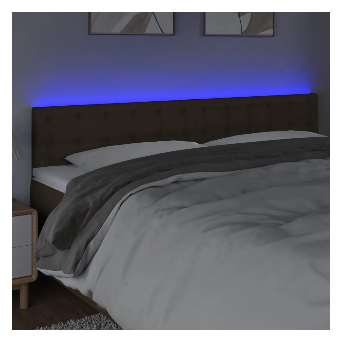 Cette tête de lit à LED classique, au design élégant, donne à votre cadre de lit une touche de modernité étonnante et convient parfaitement à toute chambre à coucher. Tissu durable : le tissu présente un aspect simple et épuré, et il est respirant et durable.LED colorée : apportez de l'éclairage dans l'obscurité avec des lumières LED colorées !Hauteur réglable : la tête de lit est réglable en hauteur selon vos préférences.Excellent soutien : la tête de lit vous offre un excellent soutien du dos lorsque vous êtes assis dans votre lit pour lire ou regarder la télévision.Bande à LED découpable : cette bande à LED flexible peut être ajustée en longueur. Le symbole des ciseaux indique où la bande peut être coupée en toute sécurité sans l'endommager. Remarque :Seule la partie avec un symbole de ciseaux peut être coupée et seule la partie avec l'USB continuera à fonctionner comme avant.Chaque produit est livré avec un manuel de montage dans la boîte pour un montage facile.Ce produit est doté d'un connecteur USB, mais la source d'alimentation certifiée de USB 5V n'est pas incluse.