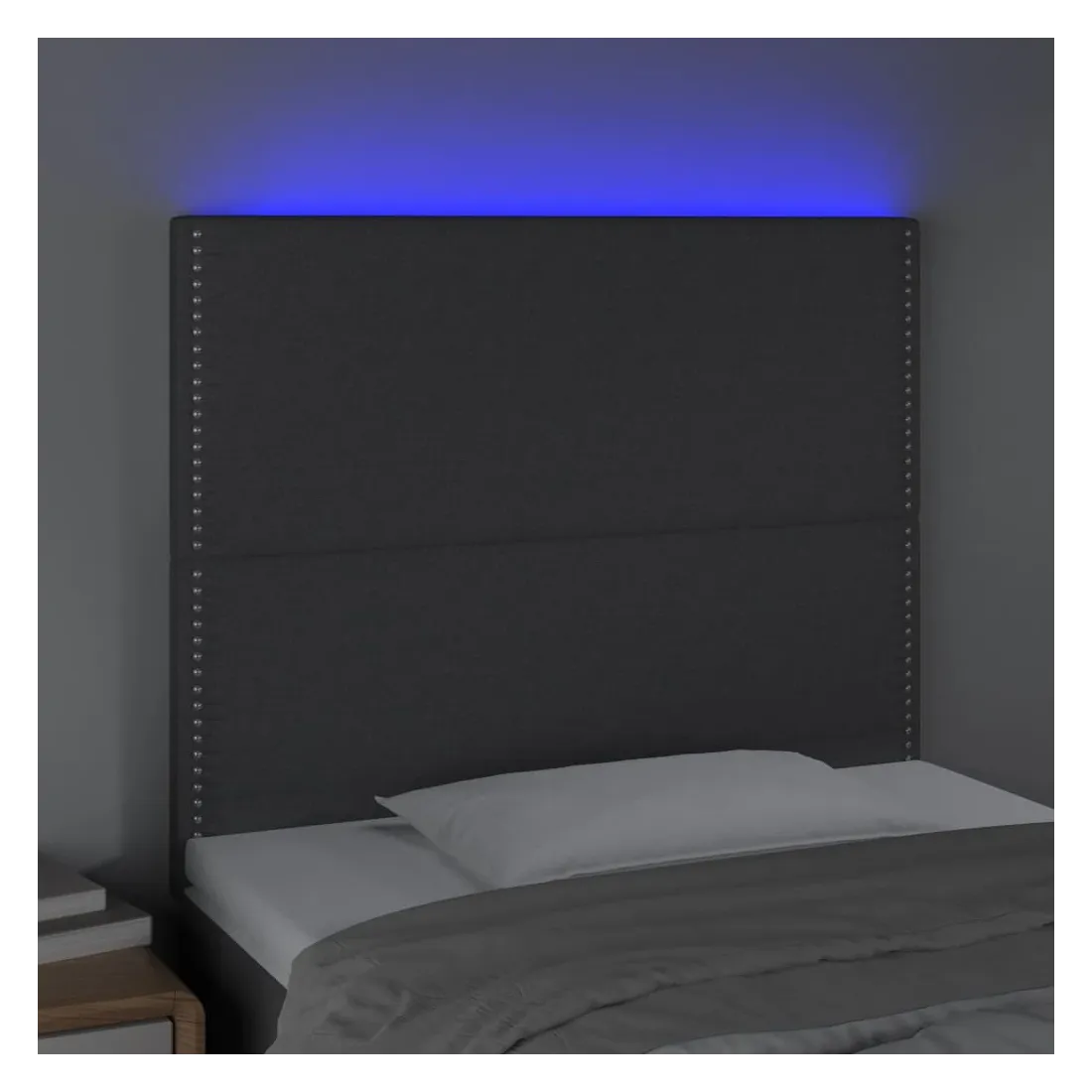 Cette tête de lit à LED classique, au design élégant, donne à votre cadre de lit une touche de modernité étonnante et convient parfaitement à toute chambre à coucher. Tissu durable : le tissu présente un aspect simple et épuré, et il est respirant et durable. LED colorée : apportez de l'éclairage dans l'obscurité avec des lumières LED colorées ! Hauteur réglable : la tête de lit est réglable en hauteur selon vos préférences. Excellent soutien : la tête de lit vous offre un excellent soutien du dos lorsque vous êtes assis dans votre lit pour lire ou regarder la télévision. Bande à LED découpable : cette bande à LED flexible peut être ajustée en longueur. Le symbole des ciseaux indique où la bande peut être coupée en toute sécurité sans l'endommager. Remarque : Seule la partie avec un sy