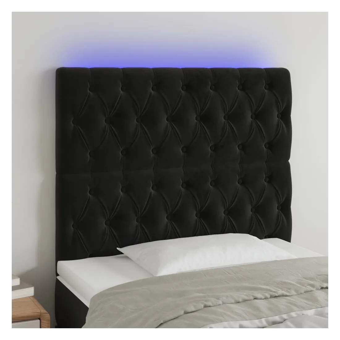 Cette tête de lit à LED classique, au design élégant, donne à votre cadre de lit une touche de modernité étonnante et convient parfaitement à toute chambre à coucher. Velours doux : le velours est un tissu doux et luxueux qui se reconnaît à son tas dense de fibres uniformément coupées qui ont une touche lisse. Le tissu en velours présente un toucher doux distinctif, ce qui le rend confortable au toucher.LED colorée : apportez de l'éclairage dans l'obscurité avec des lumières LED colorées !Hauteur réglable : la tête de lit est réglable en hauteur selon vos préférences.Excellent soutien : la tête de lit vous offre un excellent soutien du dos lorsque vous êtes assis dans votre lit pour lire ou regarder la télévision.Bande à LED découpable : cette bande à LED flexible peut être ajustée en longueur. Le symbole des ciseaux indique où la bande peut être coupée en toute sécurité sans l'endommager. Remarque :Seule la partie avec un symbole de ciseaux peut être coupée et seule la partie avec l'USB continuera à fonctionner comme avant.Chaque produit est livré avec un manuel de montage dans la boîte pour un montage facile.Ce produit est doté d'un connecteur USB, mais la source d'alimentation certifiée de USB 5V n'est pas incluse.
