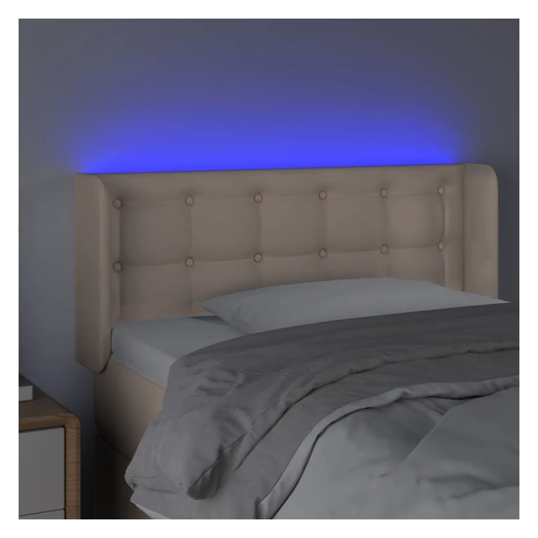 Cette tête de lit à LED classique, au design élégant, donne à votre cadre de lit une touche de modernité étonnante et convient parfaitement à toute chambre à coucher. Similicuir durable : le similicuir de qualité supérieure est un matériau très durable. Il est résistant aux taches, ce qui le rend facile à nettoyer avec un chiffon humide. La surface lisse donne également un aspect luxueux et la beauté du cuir véritable.LED colorée : apportez de l'éclairage dans l'obscurité avec des lumières LED colorées !Hauteur réglable : la tête de lit est réglable en hauteur selon vos préférences.Excellent soutien : la tête de lit vous offre un excellent soutien du dos lorsque vous êtes assis dans votre lit pour lire ou regarder la télévision.Bande à LED découpable : cette bande à LED flexible peut être ajustée en longueur. Le symbole des ciseaux indique où la bande peut être coupée en toute sécurité sans l'endommager. Remarque :Seule la partie avec un symbole de ciseaux peut être coupée et seule la partie avec l'USB continuera à fonctionner comme avant.Chaque produit est livré avec un manuel de montage dans la boîte pour un montage facile.Ce produit est doté d'un connecteur USB, mais la source d'alimentation certifiée de USB 5V n'est pas incluse.