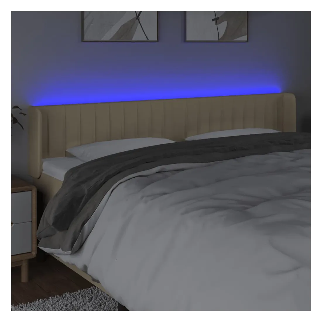 Tête de lit à LED Crème 203x16x78/88 cm Tissu