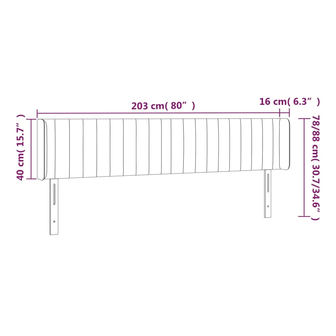 203 x 16 x 78/88 cm