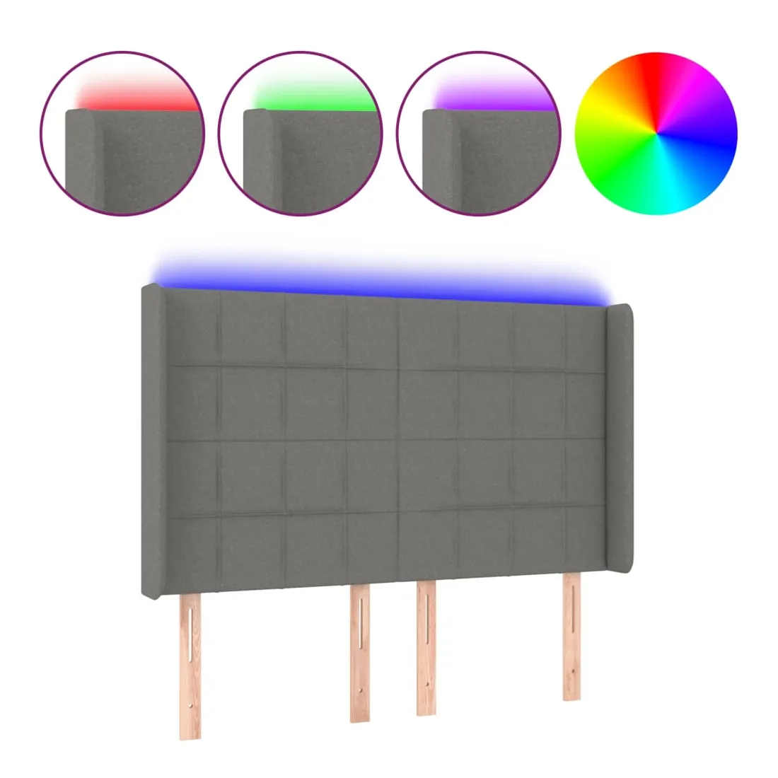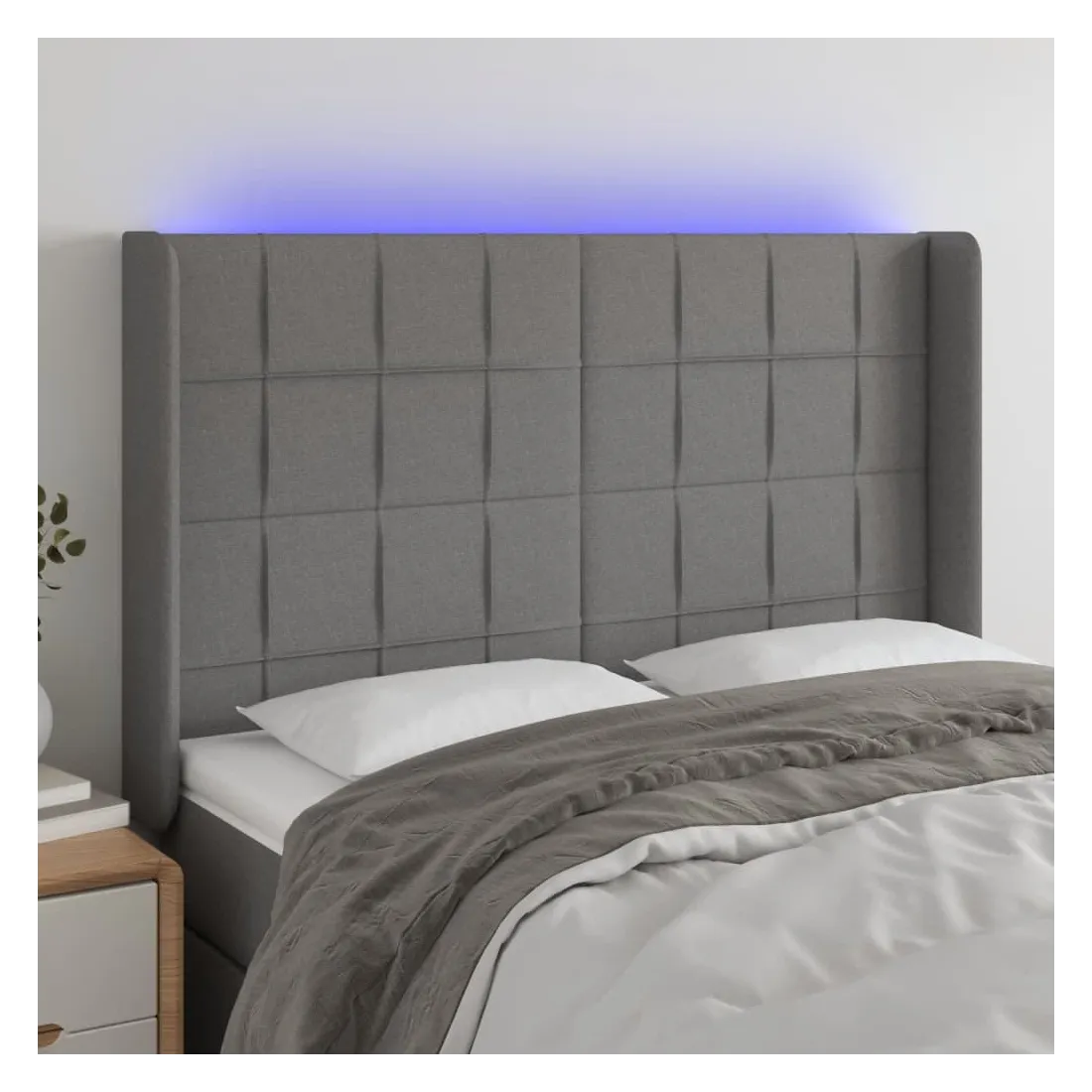 Tête de lit à LED Gris foncé 147x16x118/128 cm Tissu