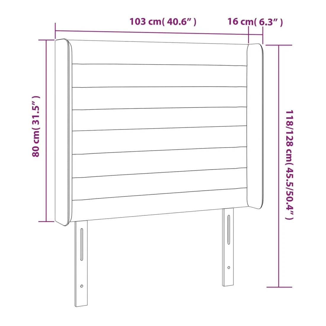 103 x 16 x 118/128 cm
