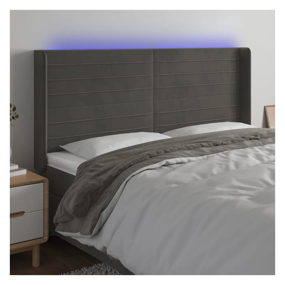Tête de lit à LED Gris foncé 203x16x118/128 cm Velours
