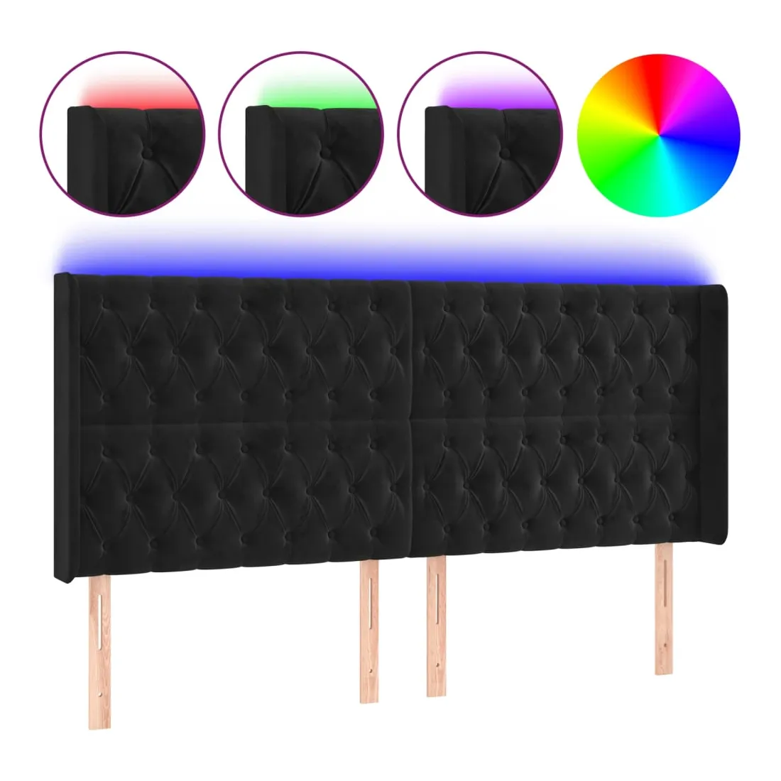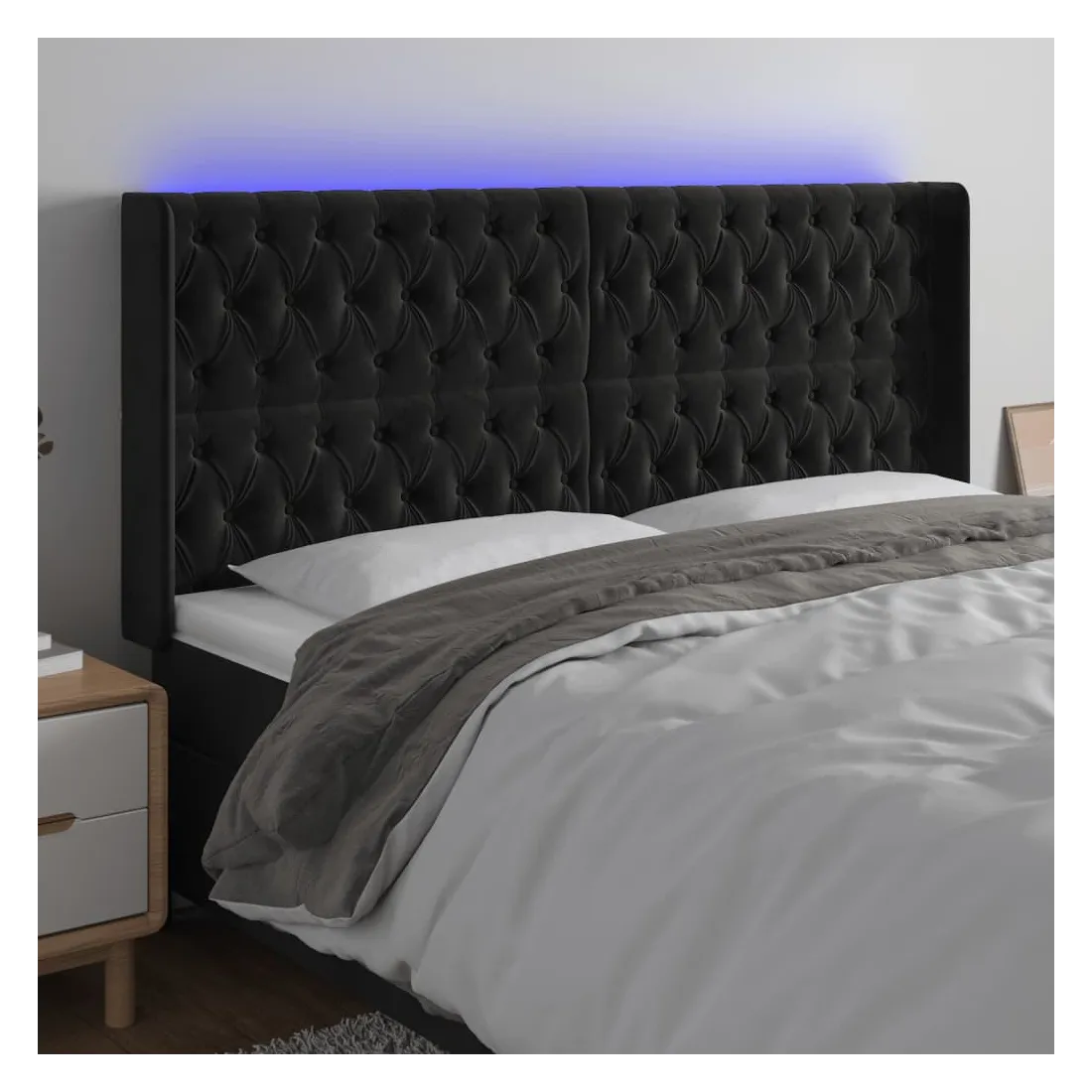 Tête de lit à LED Noir 183x16x118/128 cm Velours