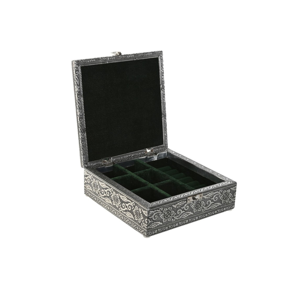 If you want to add a touch of originality to your home, you will do so with Jewelry box Home ESPRIT Green Silver Wood Aluminium 18 x 18 x 6 cm.