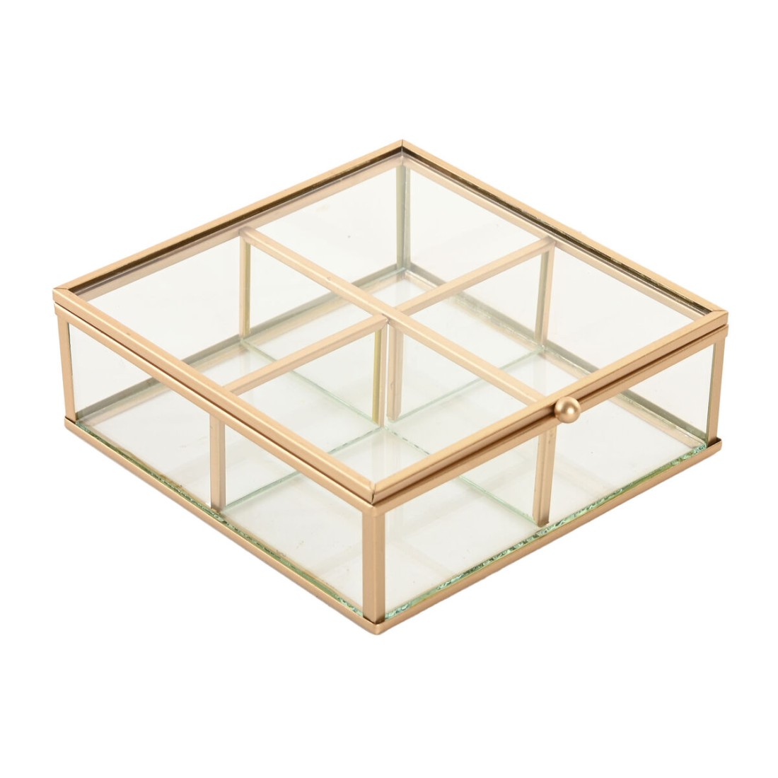Jewelry box Home ESPRIT Golden Metal Crystal 15 x 16 x 5 cm