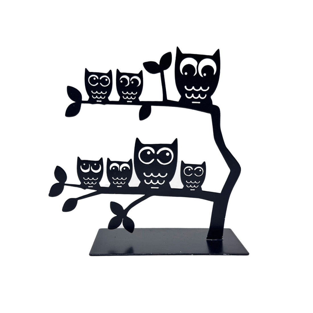 Jewellery Stand Versa Black Metal Iron 7 X 18 X 18 CM Owl Famil