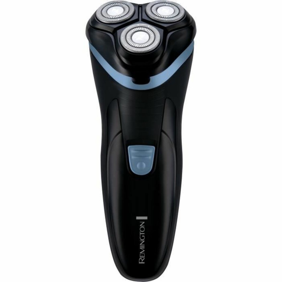 Remington R1000. Sistema de afeitado: Máquina de afeitar de rotación, Color del producto: Negro, Azul, Material de la cuchilla: Acero inoxidable. Fuente de energía: Batería, Tiempo de funcionamiento: 30 min, Tiempo de carga: 8 h. Ancho: 125 mm, Profundidad: 65 mm, Altura: 182 mm. Ancho del paquete: 50 mm, Profundidad del paquete: 150 mm, Altura del paquete: 40 mm