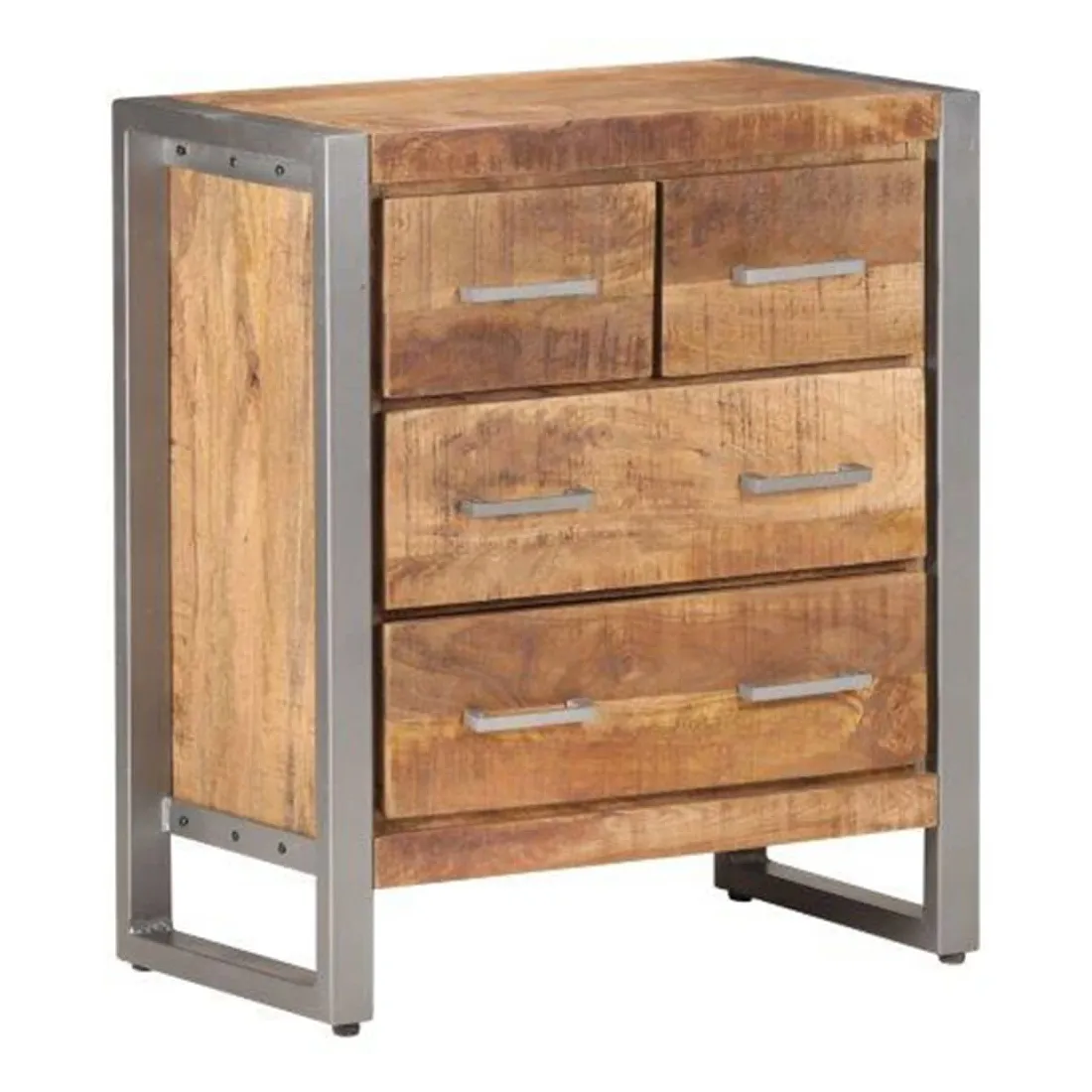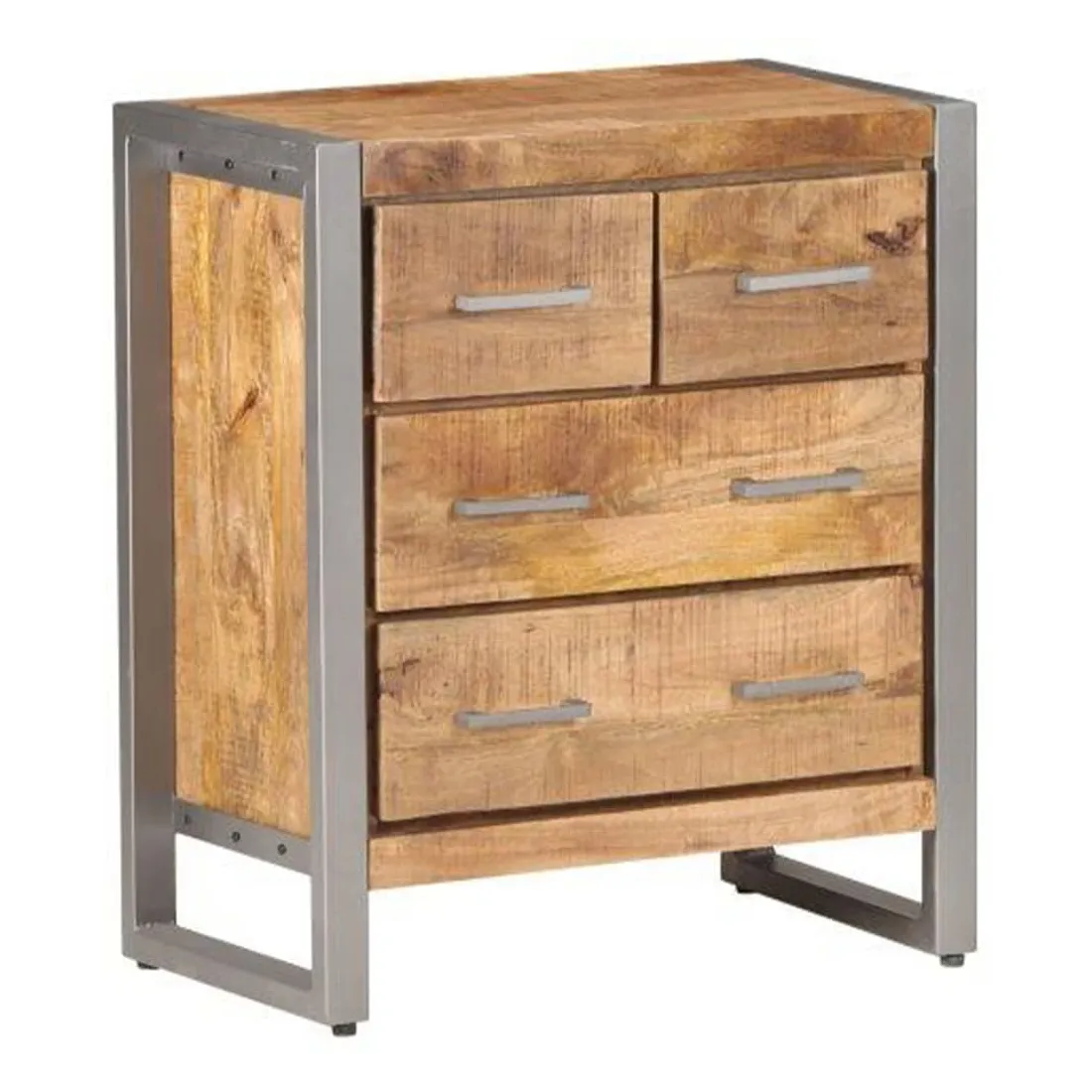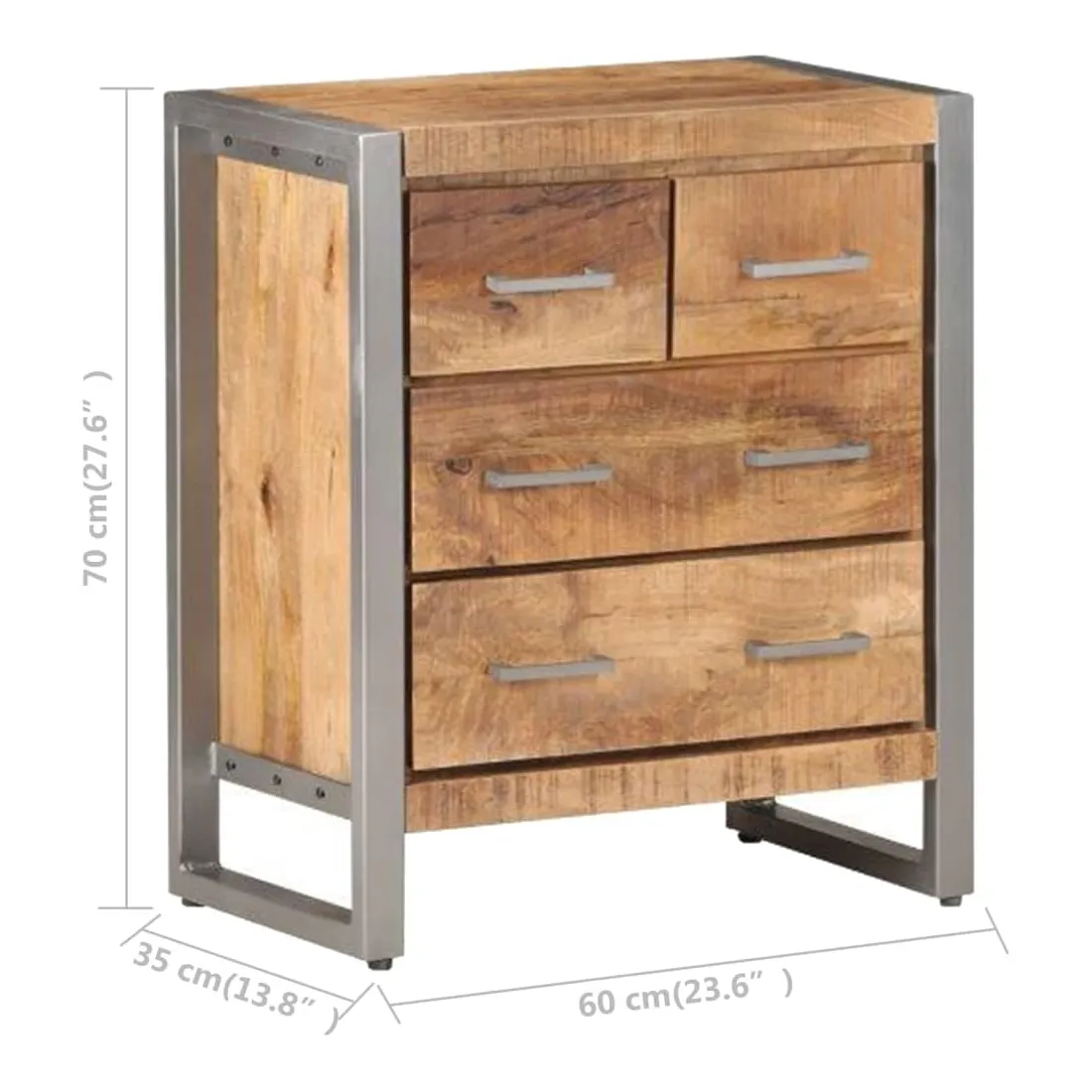 vidaXLCe buffet en bois ajoute un style industriel à votre salon. L’armoire latérale est faite de bois de manguier brut, un bois dur tropical avec la force de soutenir le poids. Il résiste également à l’usure du temps, ce qui le rend stable et durable. Le cadre en fer ajoute également une stabilité supplémentaire. Cette armoire dispose de quatre tiroirs offrant beaucoup d’espace de rangement. De plus, le dessus robuste est idéal pour exposer des objets décoratifs tels que des cadres photo, des plantes en pot, des vases, etc. Remarque importante : les couleurs et les grains peuvent varier d'une pièce à l'autre, rendant chaque pièce unique. La livraison est aléatoire, ce qui garantit l'exclusivité et l'individualité de votre produit.